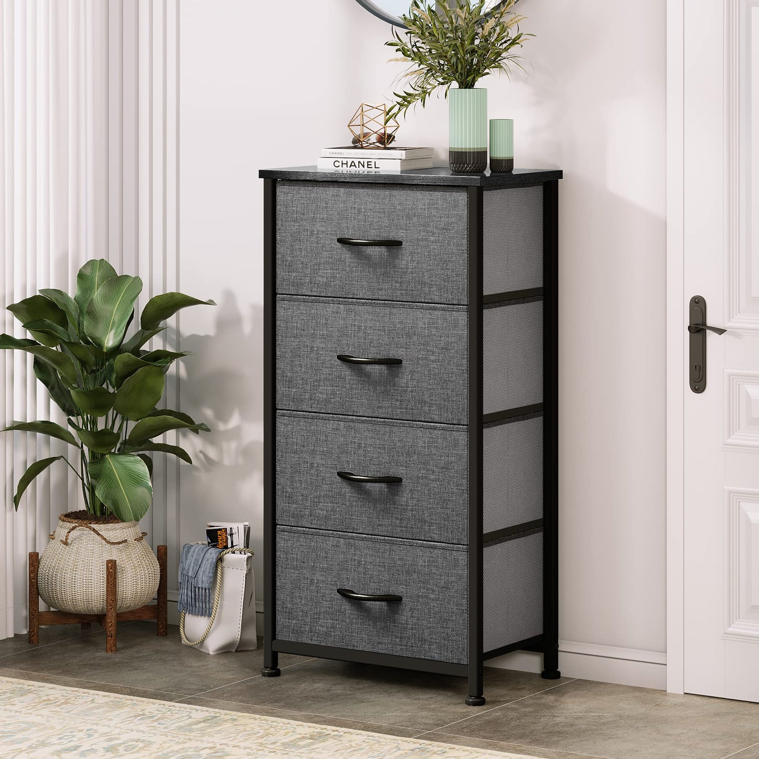 DWVO Storage Tower with 4 Drawers - Fabric Dresser, Organizer Unit for Bedroom, Living Room, Closets - Sturdy Steel Frame, Easy Pull Fabric Bins & Wooden Top