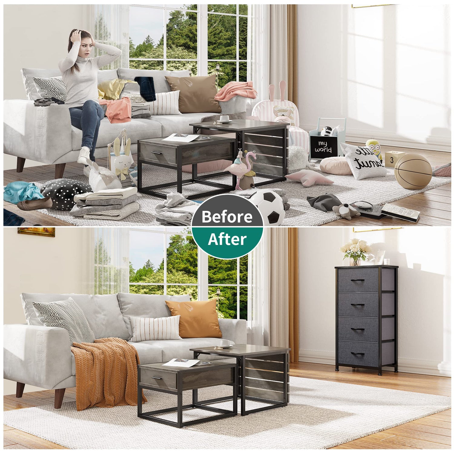 - UNIVERSALLY COMPLEMENTARY- Premium black grey fabric drawers, with sturdy black metal frame and wooden tabletop; Enjoy modern scent and stylish aesthetics that easily complements various living spaces: living rooms, bedrooms, hallways, entryways, closets etc
