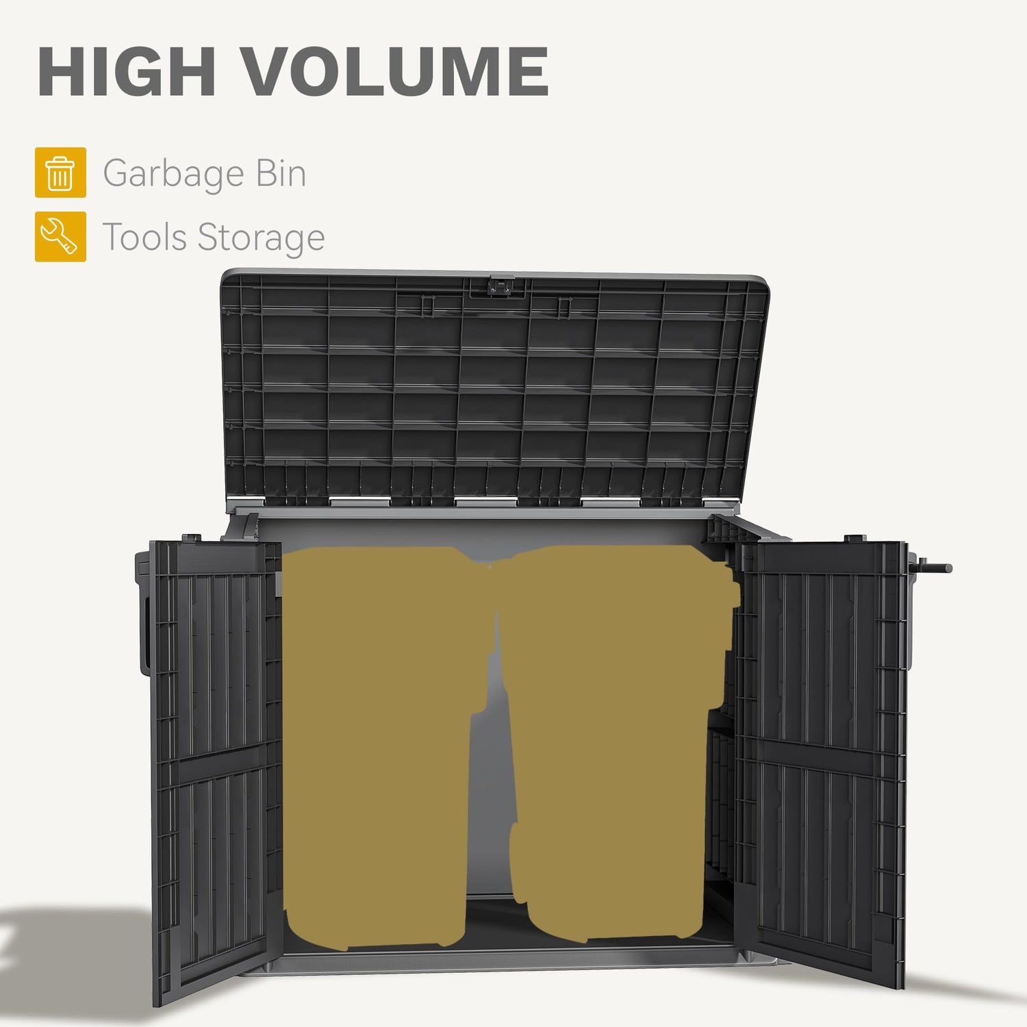 - Multi-Use Outdoor Storage: Versatile 36 cu ft cabinet functions as a garden storage shed, garbage bin shelter, tool house, or even a cozy pet nook, tailored to fit various outdoor storage needs with sleek black imitation wood grain design