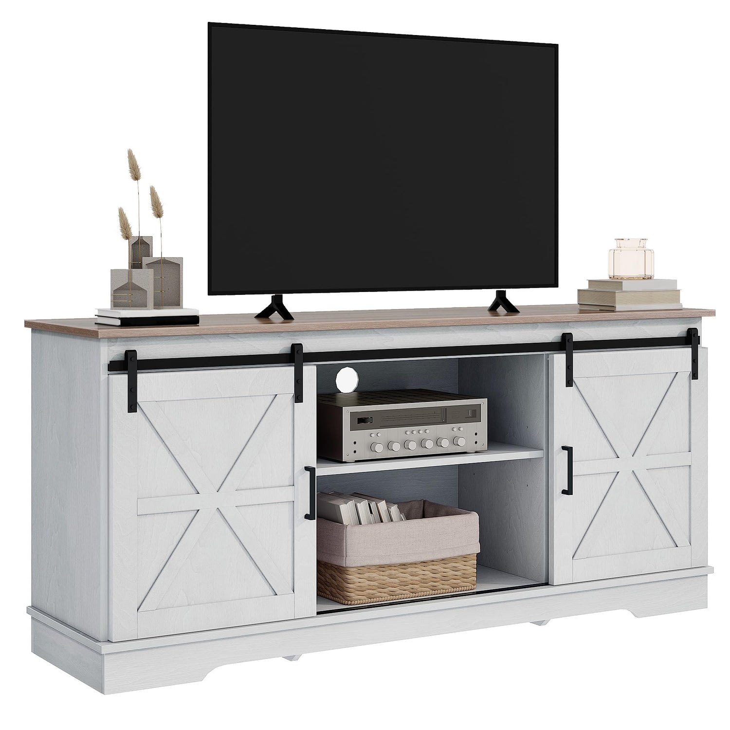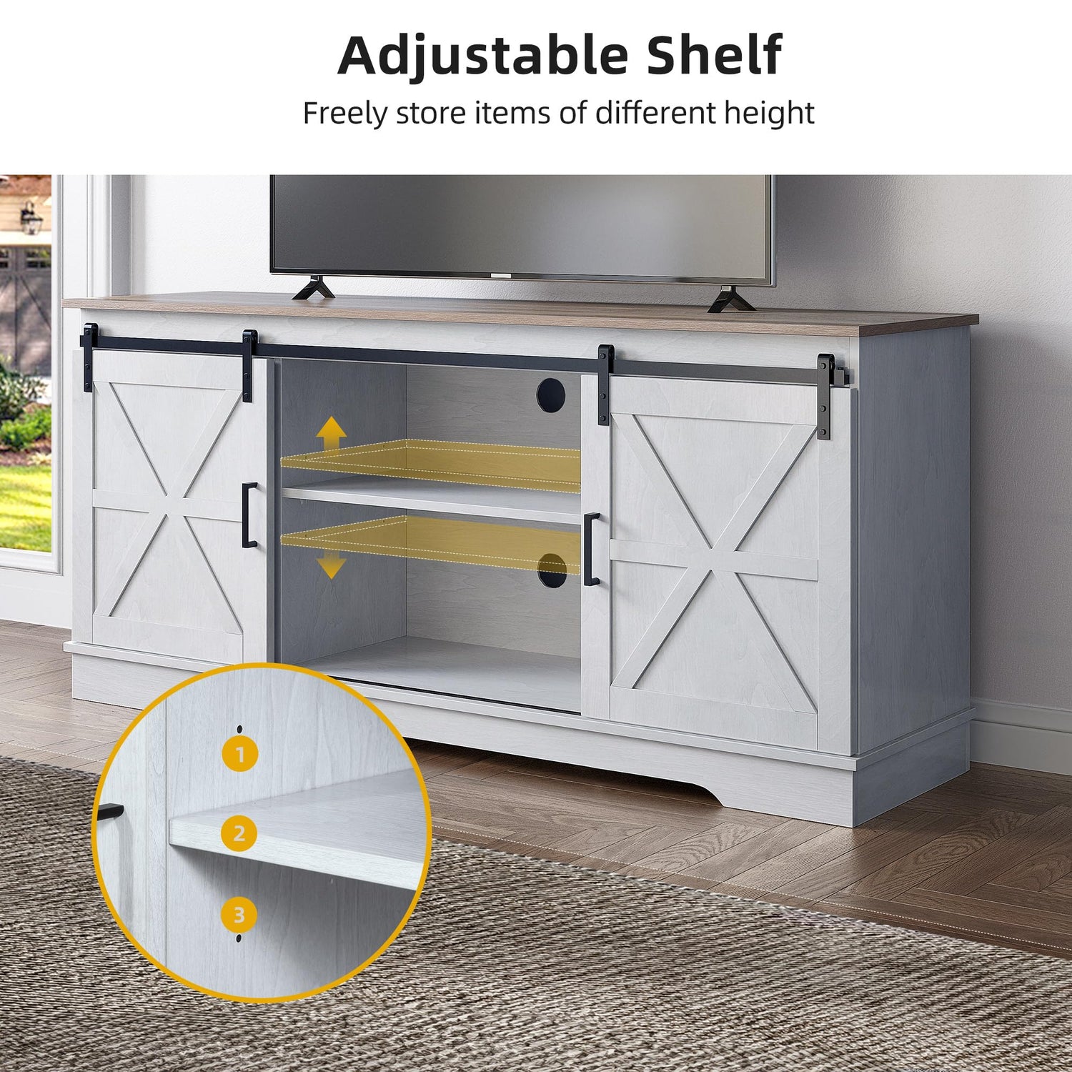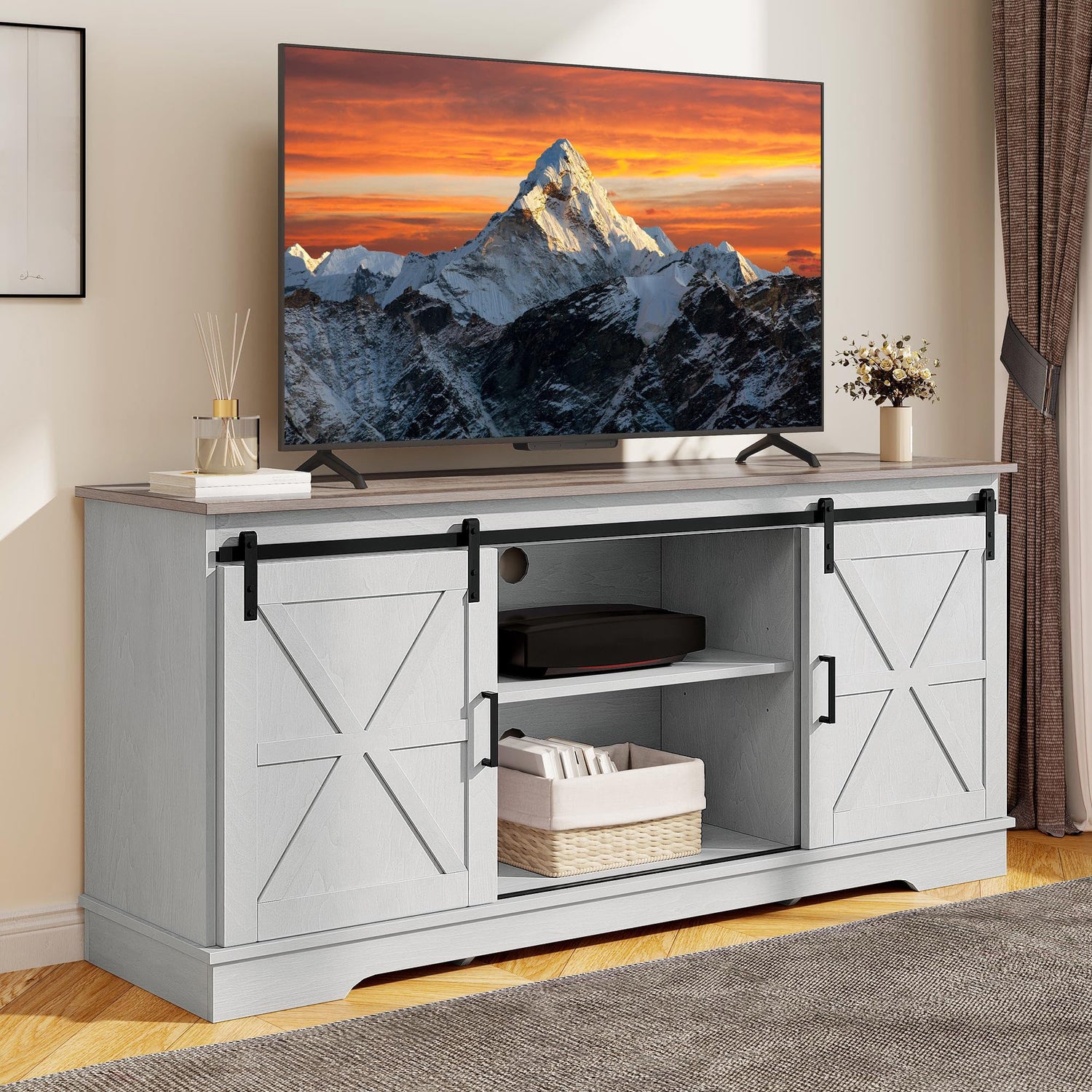 DWVO TV Stand for TVs up to 65 Inch, Farmhouse Entertainment Center with Storage Cabinets and Sliding Barn Doors, Rustic Media TV Console Table for Living Room, Grey White/Grey Wash