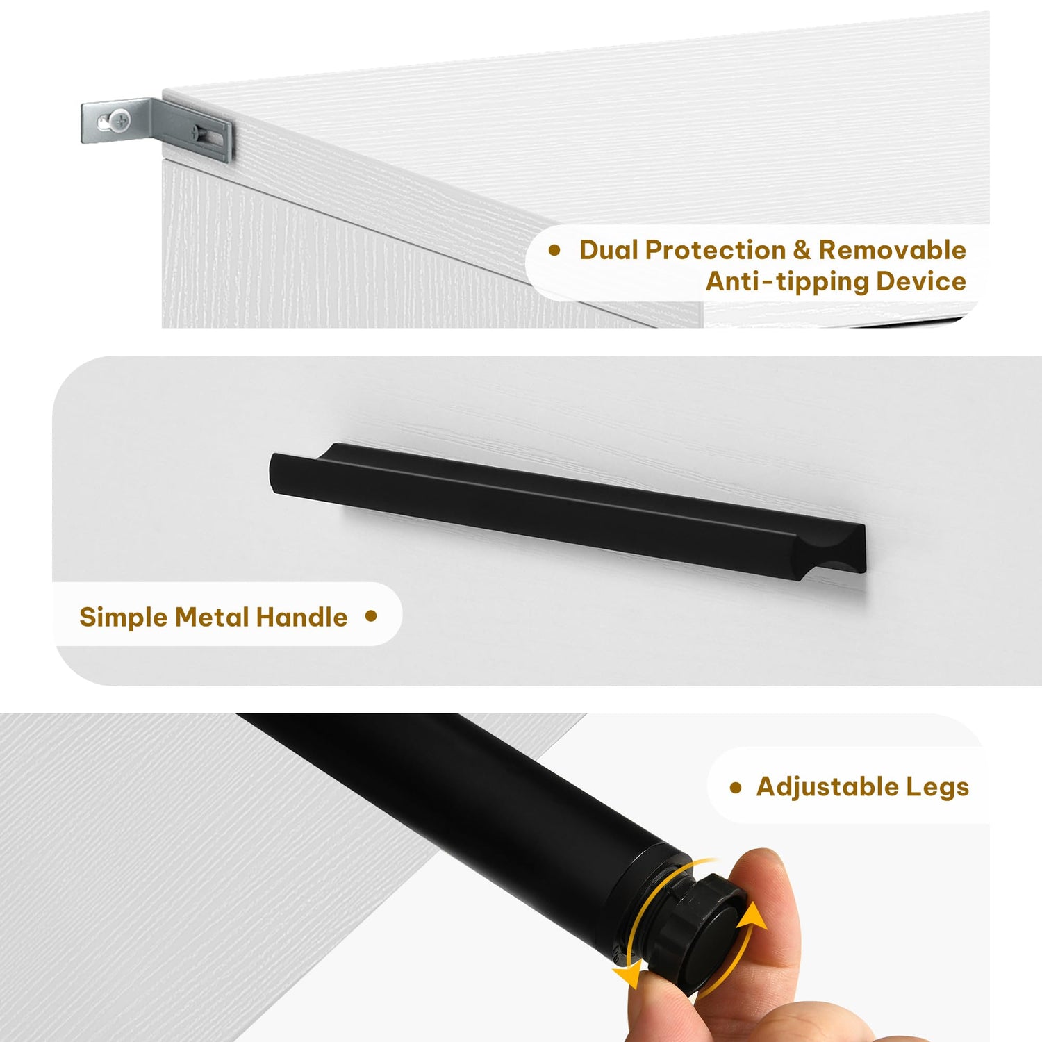 • Anti-Tipping Devices: The modern dresser with 6 drawers features a double anti-tip back buckle and thickened support feet to better prevent accidents and protect your family's safety