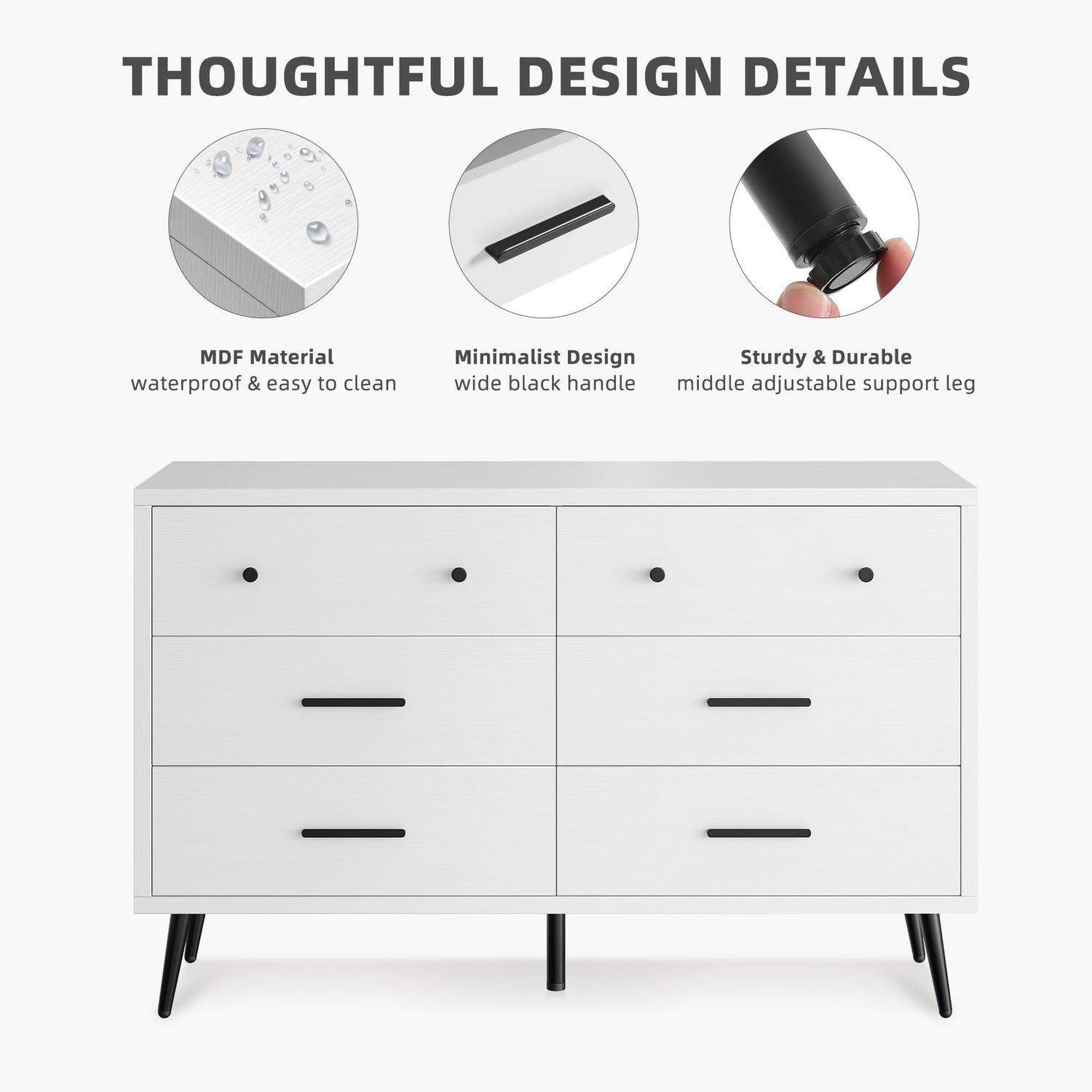 - Anti-Tipping Devices: The modern dresser with 6 drawers features a double anti-tip back buckle and thickened support feet to better prevent accidents and protect your family's safety