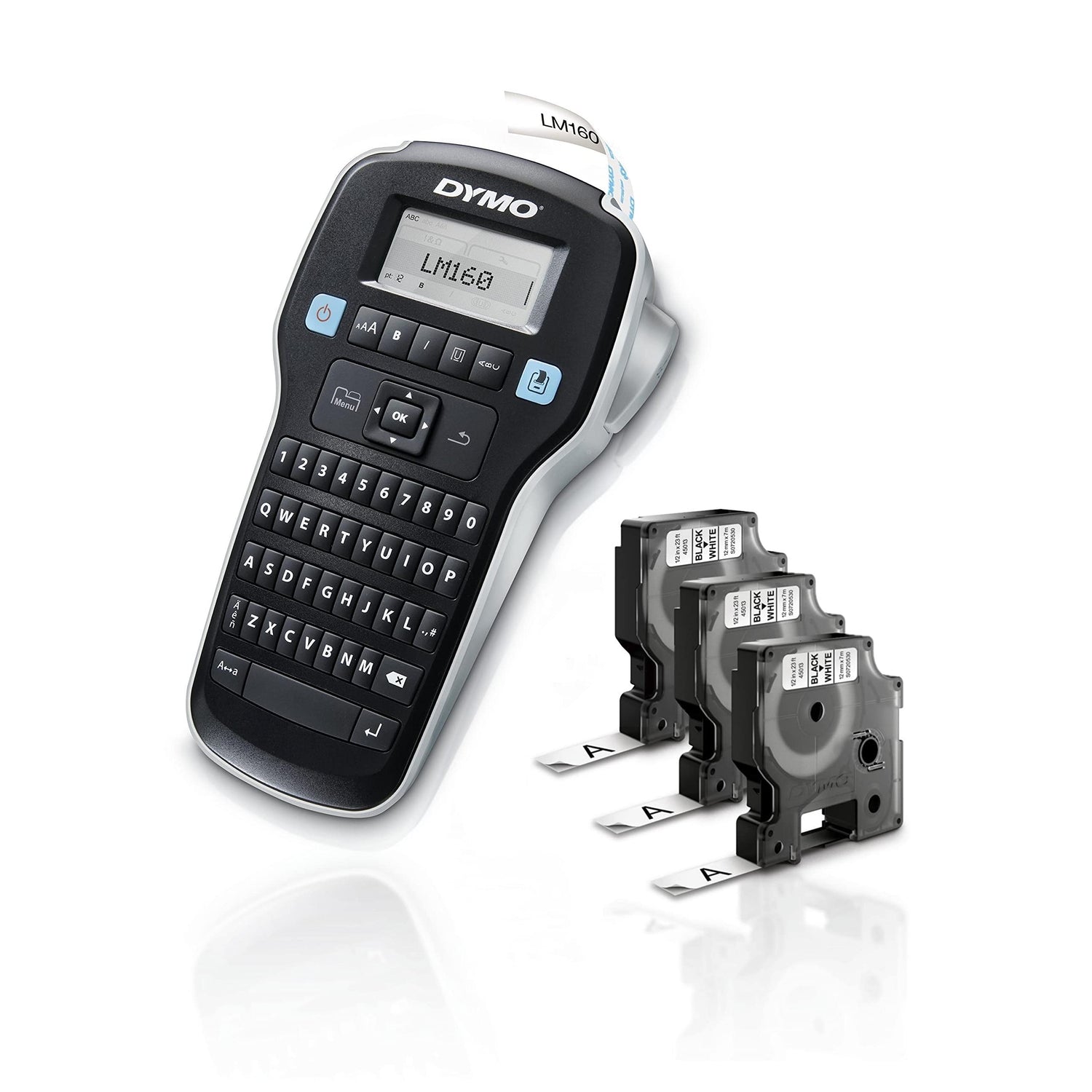 DYMO LabelManager 160 Portable Label Maker Bundle, Easy-to-Use, One-Touch Smart Keys, QWERTY Keyboard, Large Display, For Home & Office Organization, Includes 3 D1 Label Cassettes