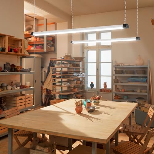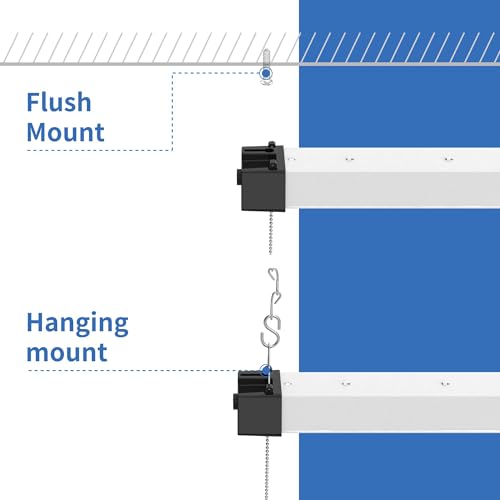- SIMPLE INSTALLATION: Our shop light can be easily mounted onto any surface or hung from its hooks. Whether you need overhead lighting or task-specific illumination, our shop light has got you covered.
