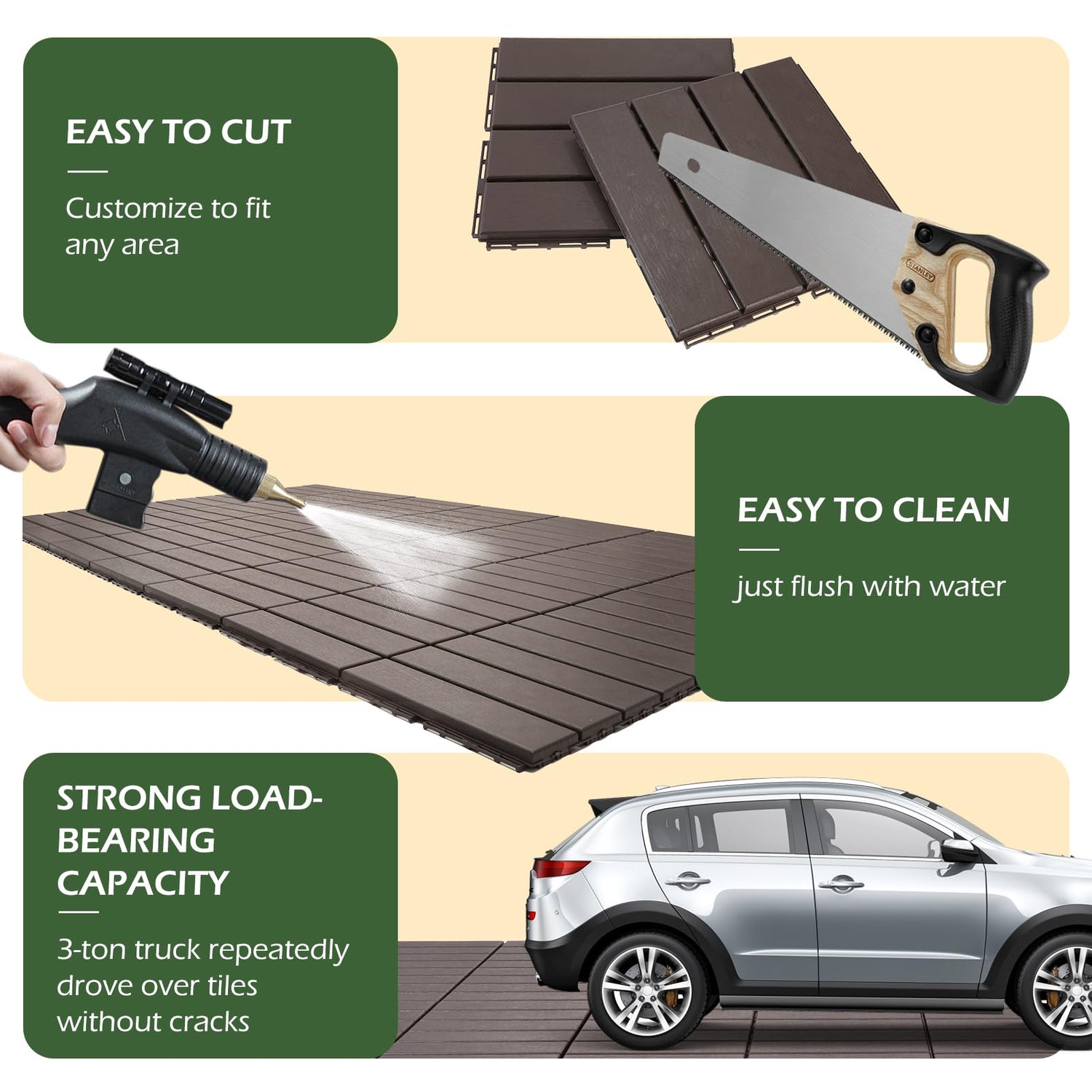 - 【Easy Maintenance】: Our decking tiles are designed to be low-maintenance, easy to clean and maintain, saving you time and effort. Just flushed with water gun and other cleaning tools takes to keep them looking great.
