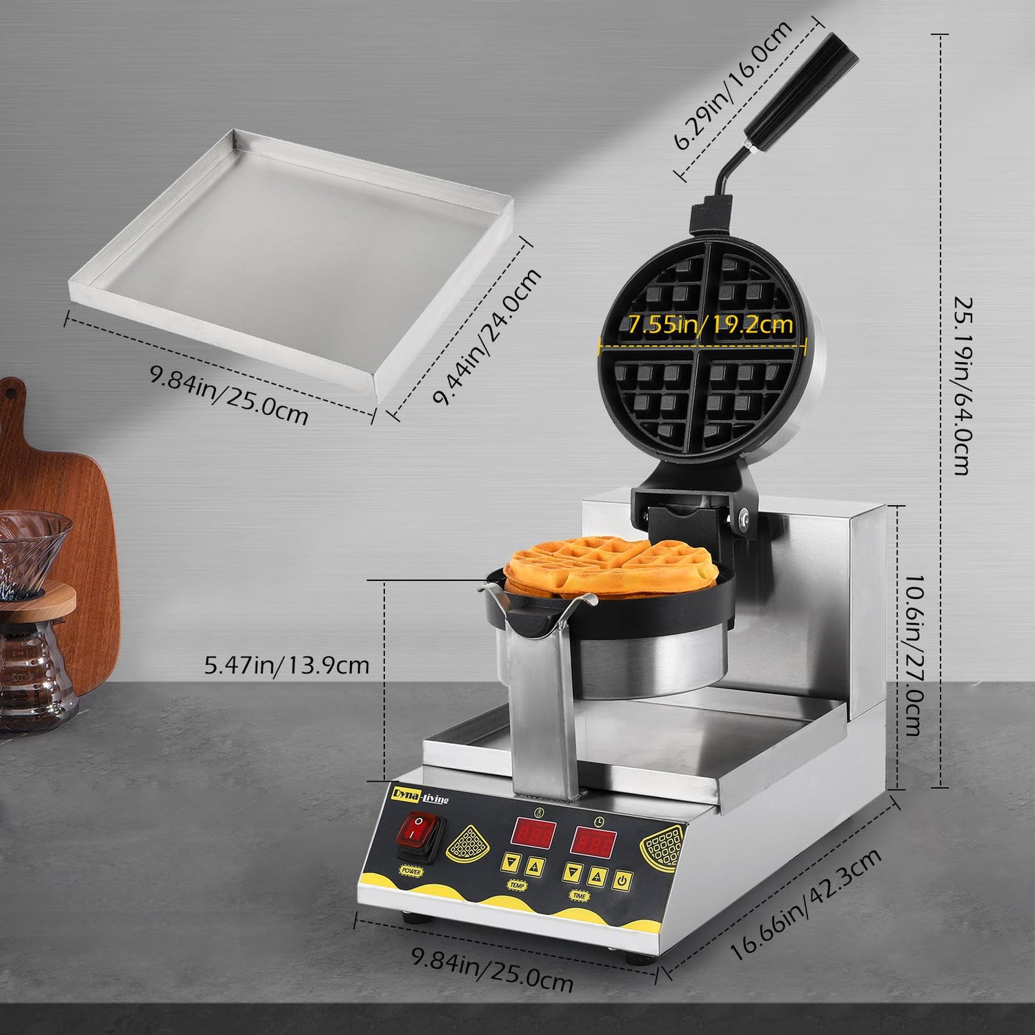 Dyna-Living Belgian Waffle Maker Commercial Intelligent Round Waffle Maker Rotating 180° Nonstick Flip Waffle Iron Machine Professional Commercial Waffle Maker for Restaurant 110V 1200W