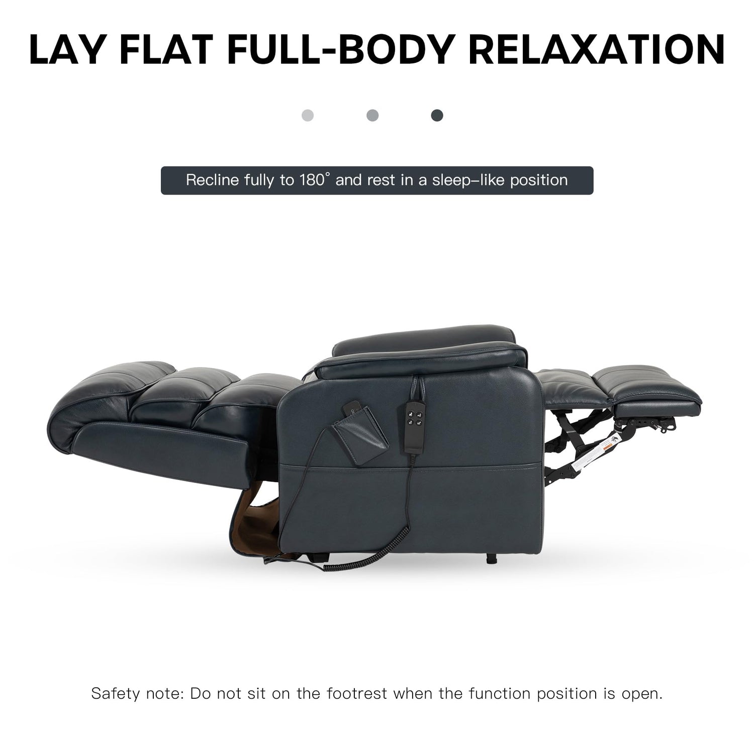 - Dual Motor & Full 180° Lay Flat Recline:Equipped with a high-performance dual-motor system, this lift chair allows independent control of the backrest and footrest. It smoothly adjusts to infinite positions and fully reclines to 180°, offering ideal comfort for watching TV, relaxing, or sleeping. Perfect for seniors or anyone needing mobility support.