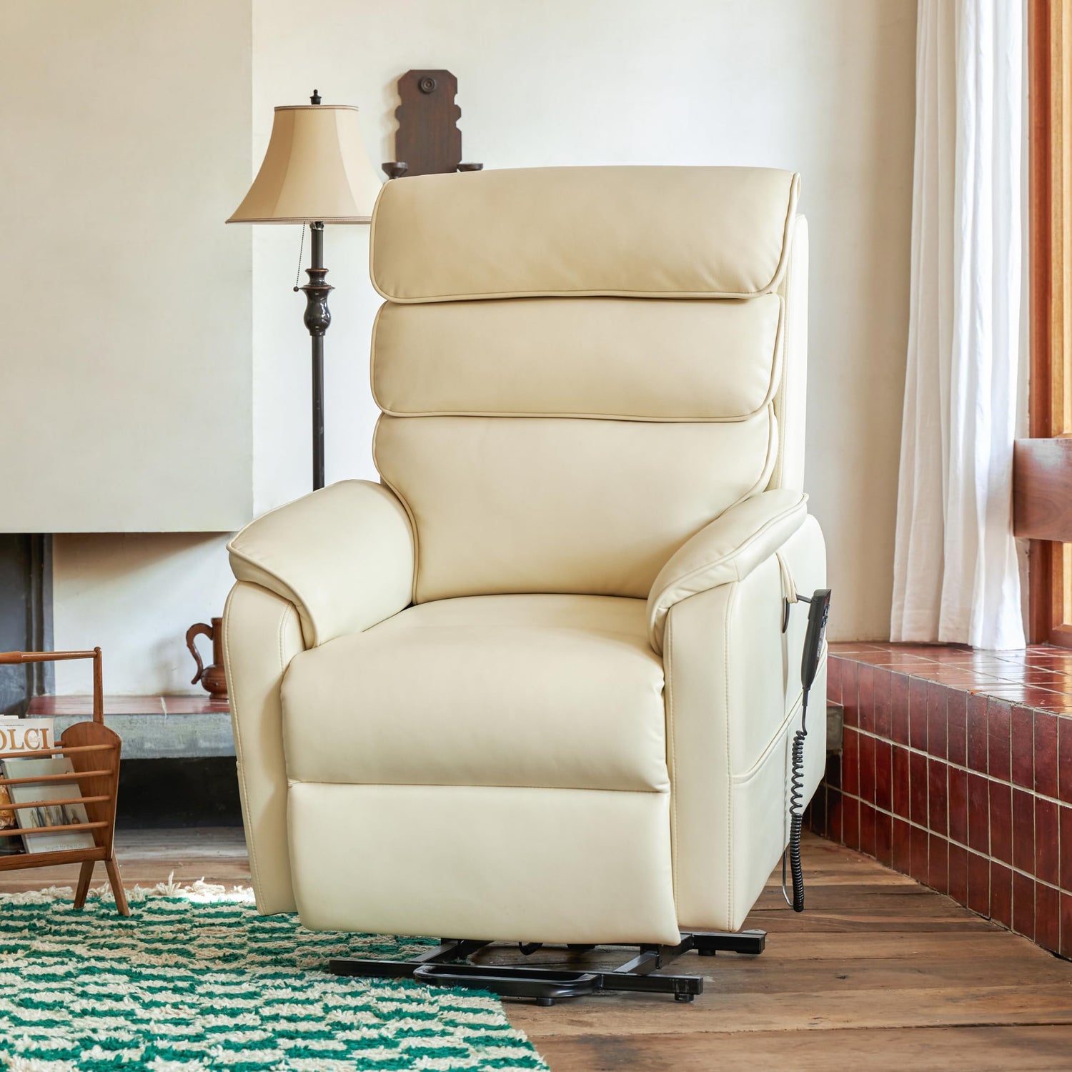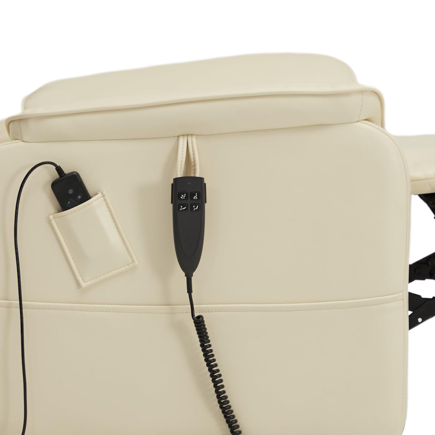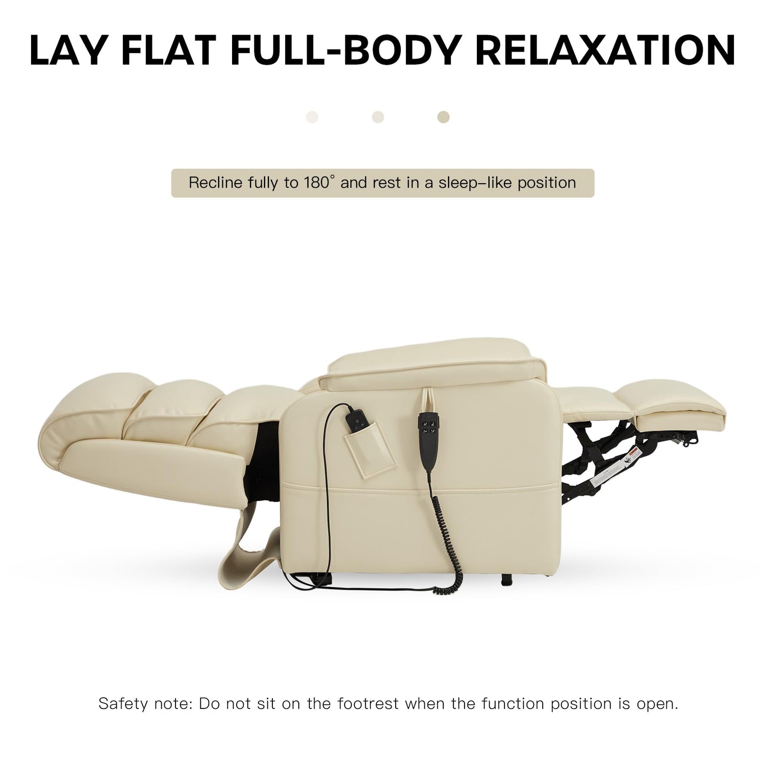 DYNOX 350 LBS Power Lift Recliner Chair for Elderly, Medium Size Dual Motor Lay Flat Infinite Positions Recliner with Heat & Massage(9188,Faux Leather,Cream)