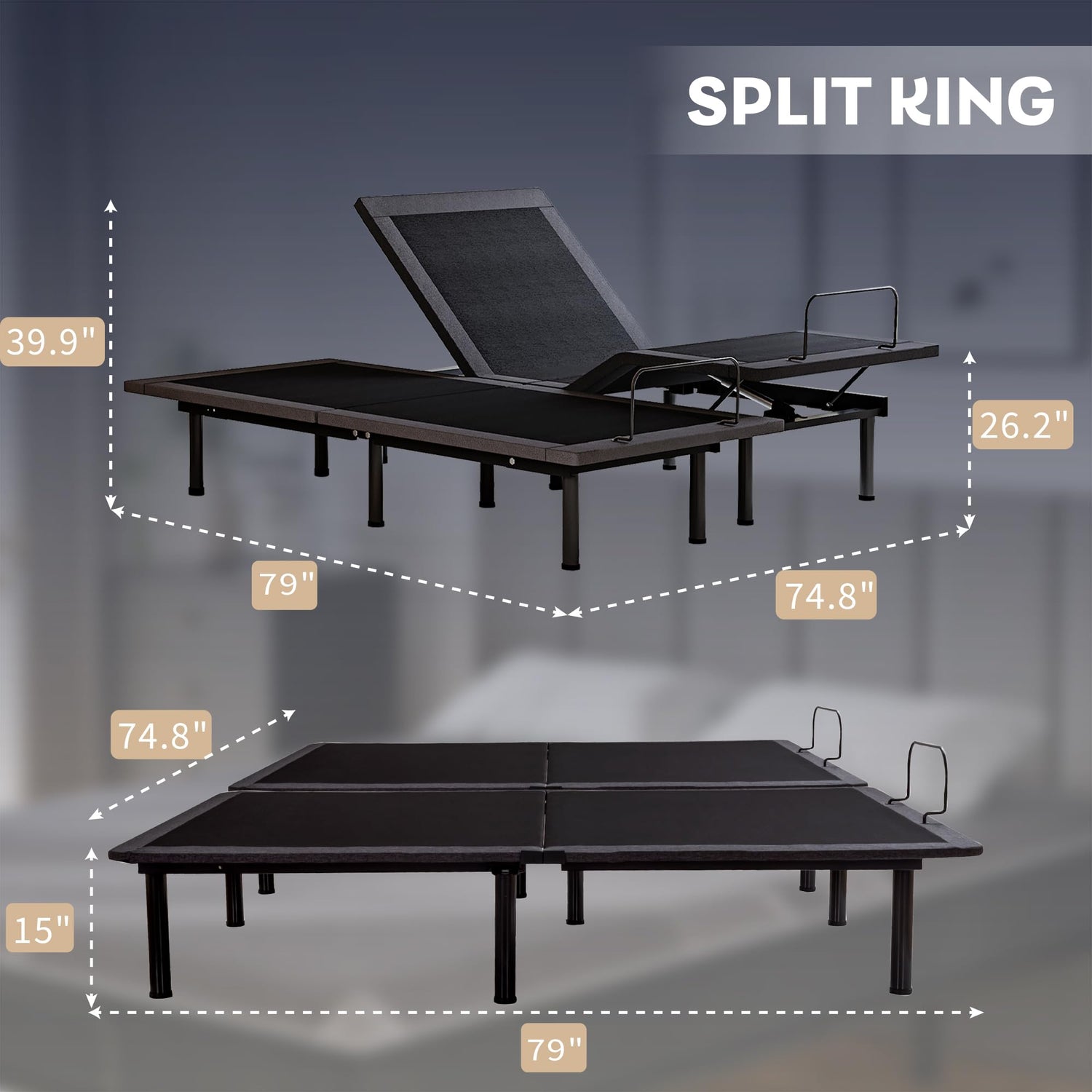 Dyonery Split King Adjustable Bed Frame with 14 inch Gel Memory Foam Mattress, CertiPUR-US Certified Fiberglass Free, Zero Gravity & Wireless Remote, Head & Foot Incline, 80"×76"