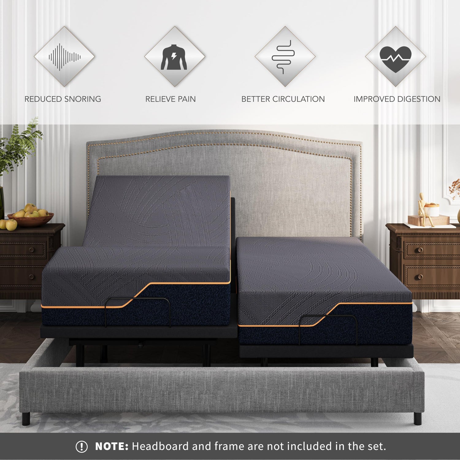 Dyonery Split King Adjustable Bed Frame with Mattress, 14 Inch Copper-Gel AeroFusion Memory Foam, Head & Foot Incline, 750lbs Lift Capacity, Powerful Quiet Motor, 5 Minutes Tools-Free Assembly