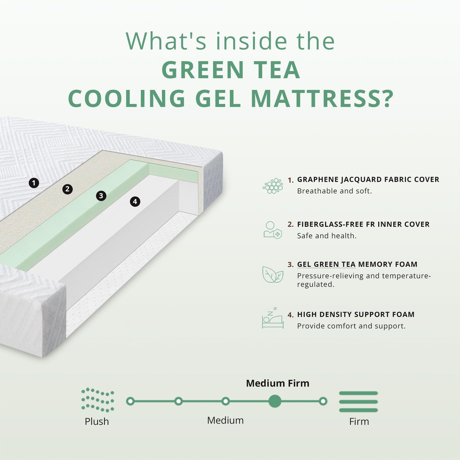 - 【10-Year Limited Warranty for Worry-Free Sleep】We offer a 10-year limited warranty on all of our memory foam mattresses to ensure that you have worry-free sleep. If you have any issues with your green tea mattress, please contact our customer support team and they will work with you to resolve the issue. Please note that our mattresses cannot be returned once opened