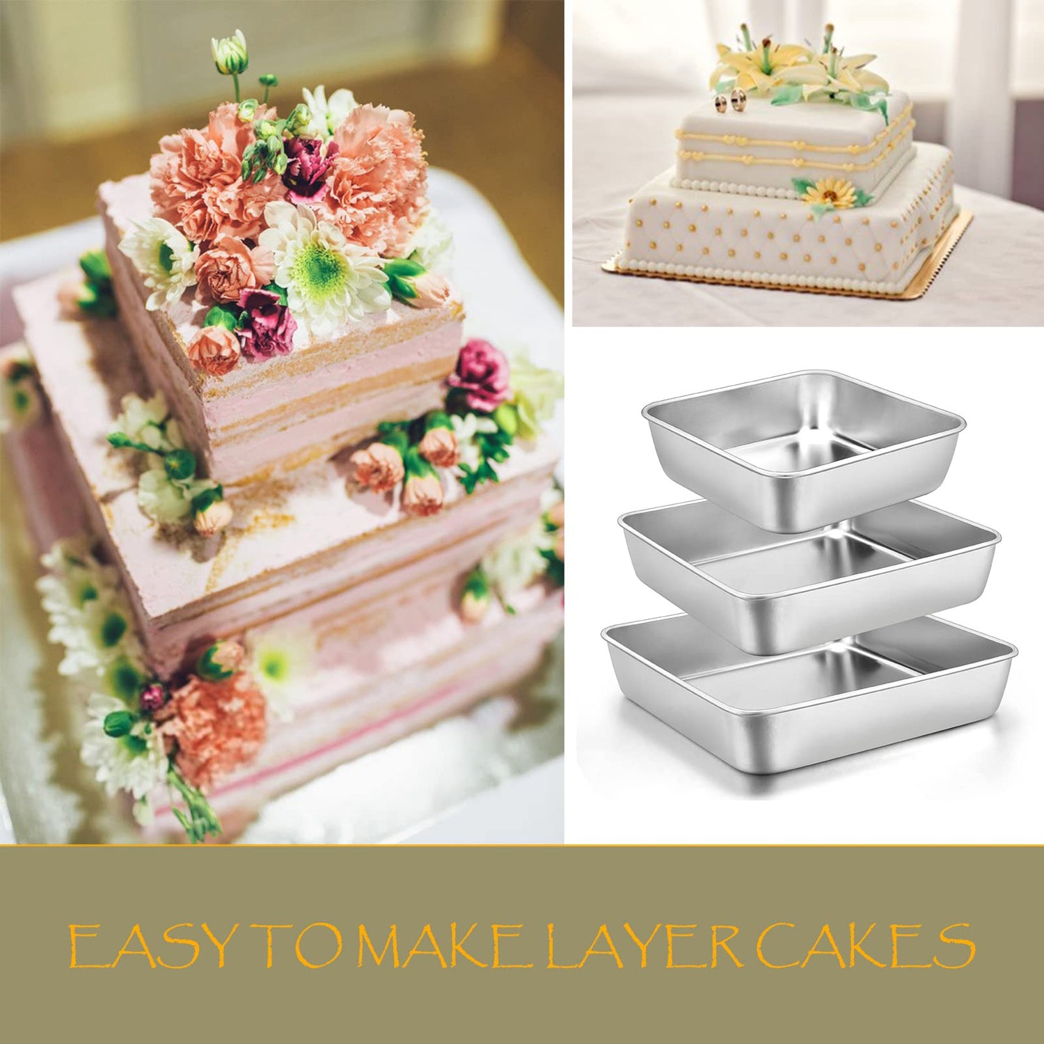- HEALTHY: E-far square cake pans are made of pure stainless steel without toxic materials, No harmful chemicals releasing in high temperature, Unlike aluminum and coated pans, Healthy for your daily baking use