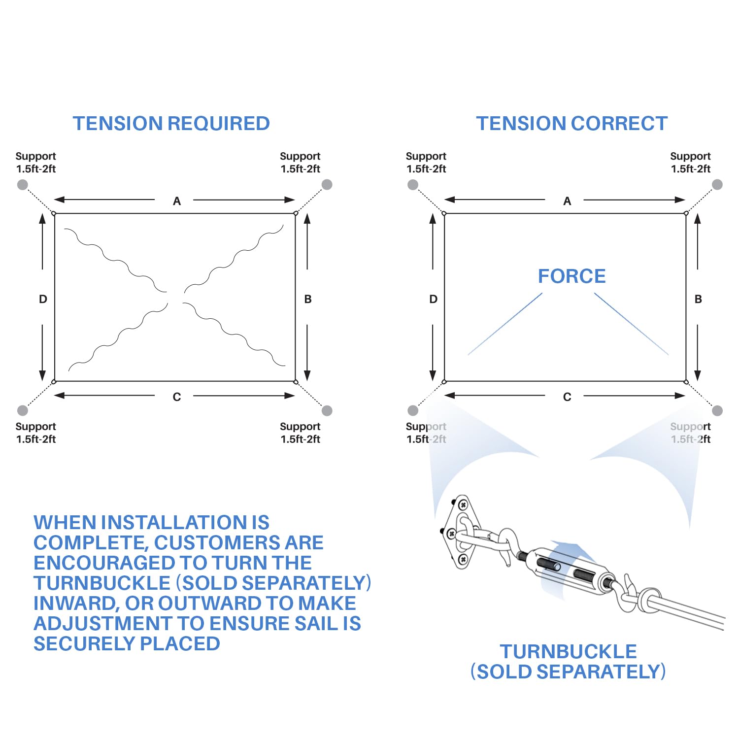 - D-RING&GROMMETS DESIGN - With stainless steel D-Ring on each corner, our sun shade sail will strongly guarantee fastness of installation. The grommets are placed on each side that will enhance strength for stability.