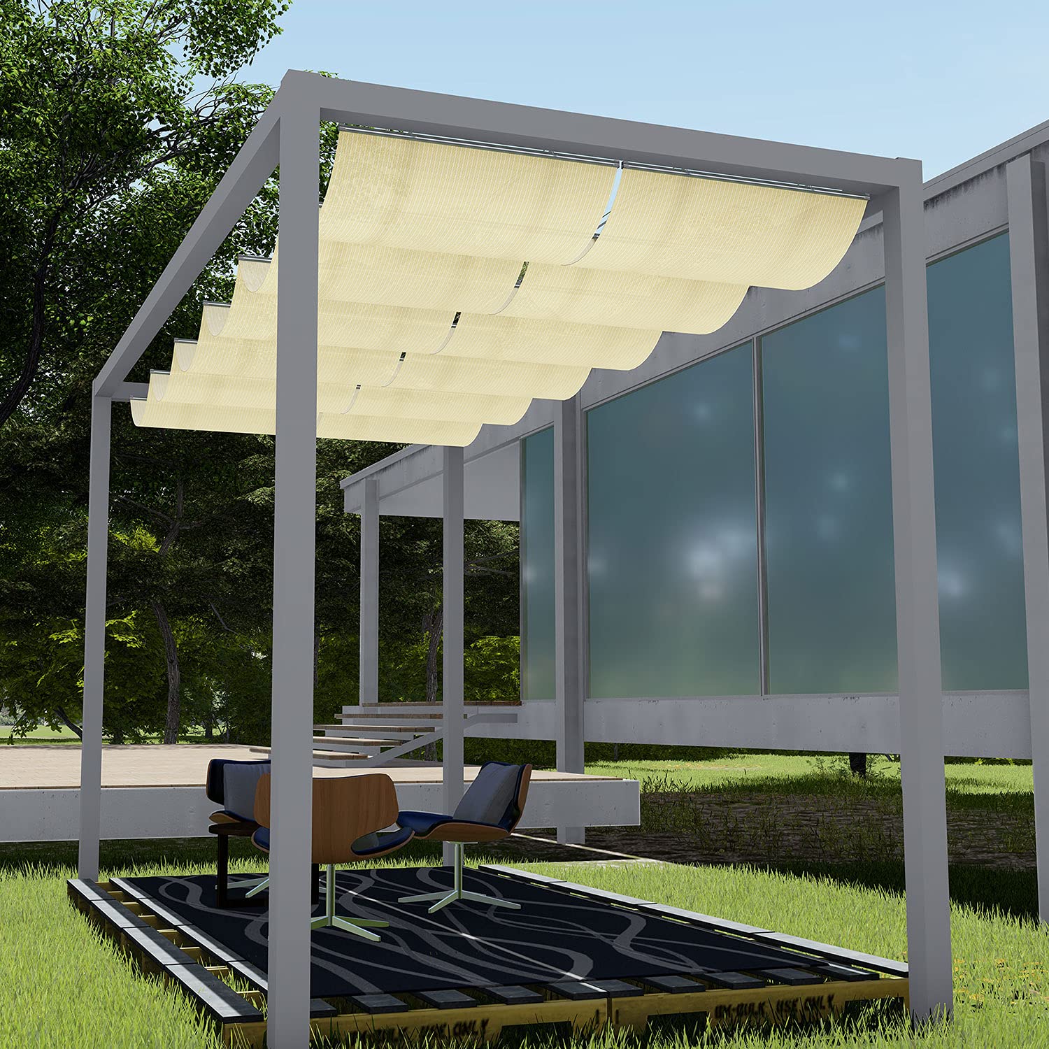 - RETRACTABLE CANOPY COVER - The shade cover is adjustable, you can control the area of covering when it's sunny or cool. Ideal for your pergola, deck, patio, backyard, trellis, etc. With this retractable canopy cover, you can have lunch, dinner, parties or rest outdoor.