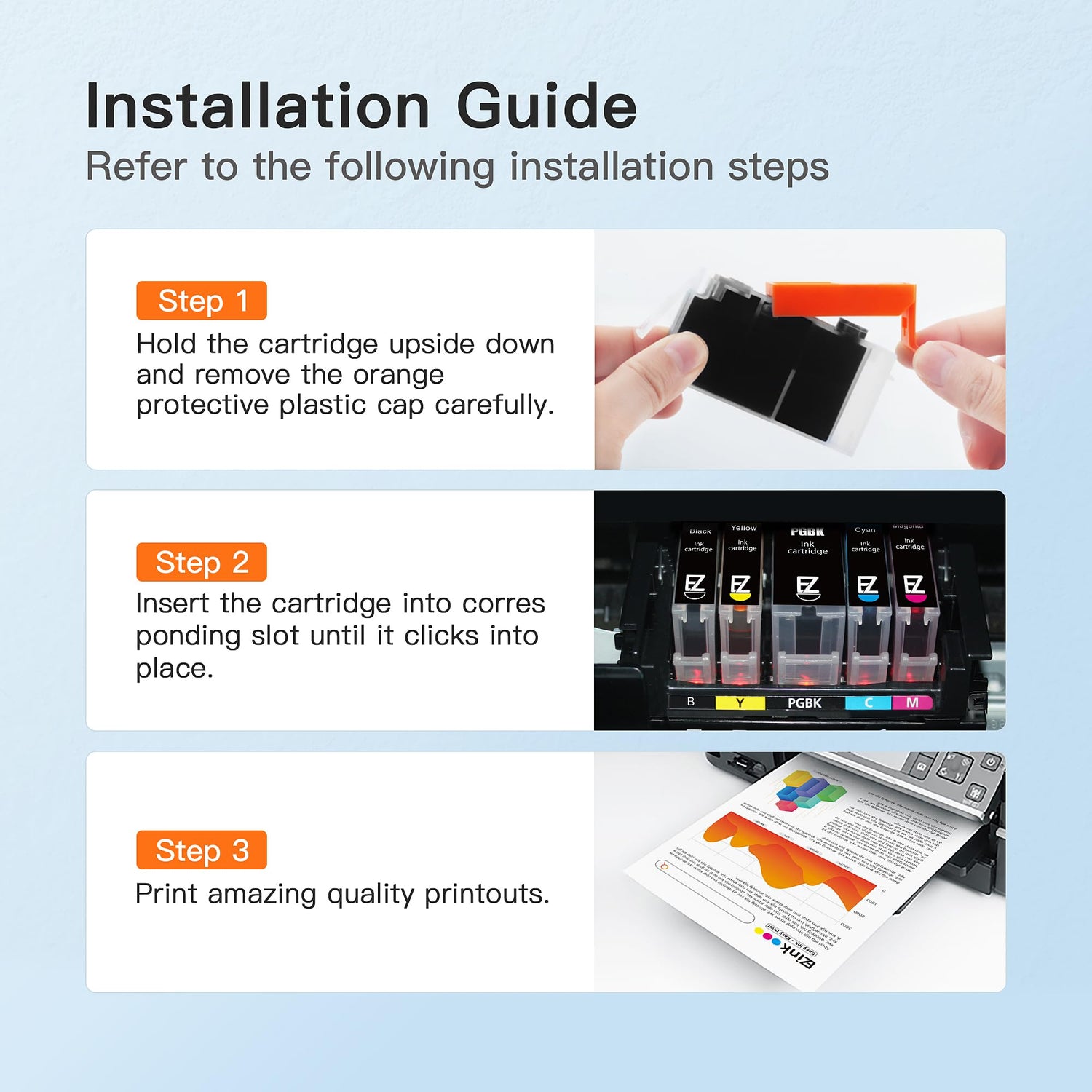 - Printer Compatibility: Compatible with Pixma MG5720, Pixma MG5721, Pixma MG5722, Pixma MG6820, Pixma MG6821, Pixma MG6822, Pixma MG7720, Pixma TS5020, Pixma TS6020, Pixma TS8020, Pixma TS9020 Inkjet Printer