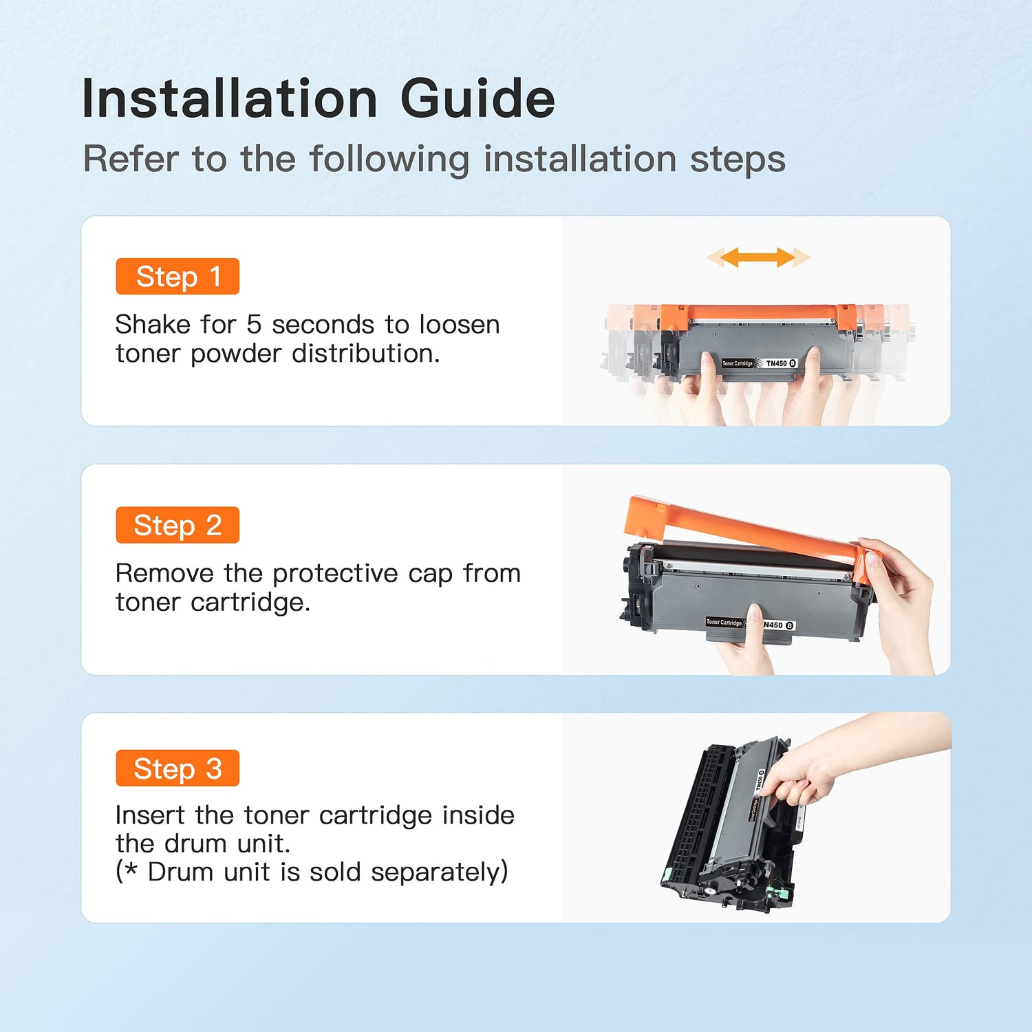 - Package contents: 1 x User Guide, 2 black TN450 toner cartridges (total 2 pack)