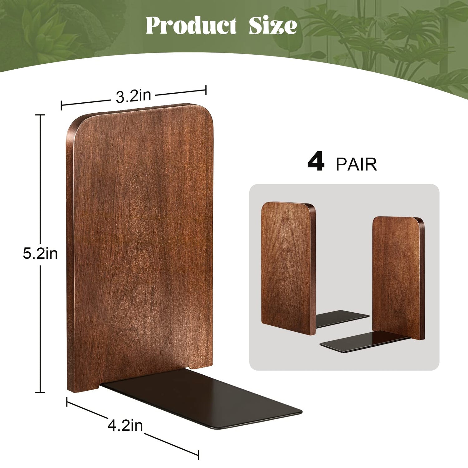 - Package Includes: you will get 4 pairs of walnut bookends, 8 pieces in total, each with a size of approx. 5.2 x 3.2 x 4.2 inches/ 13 x 8 x 10.5 cm, which are large enough to put your books and documents between them; Its color can decorate your room well