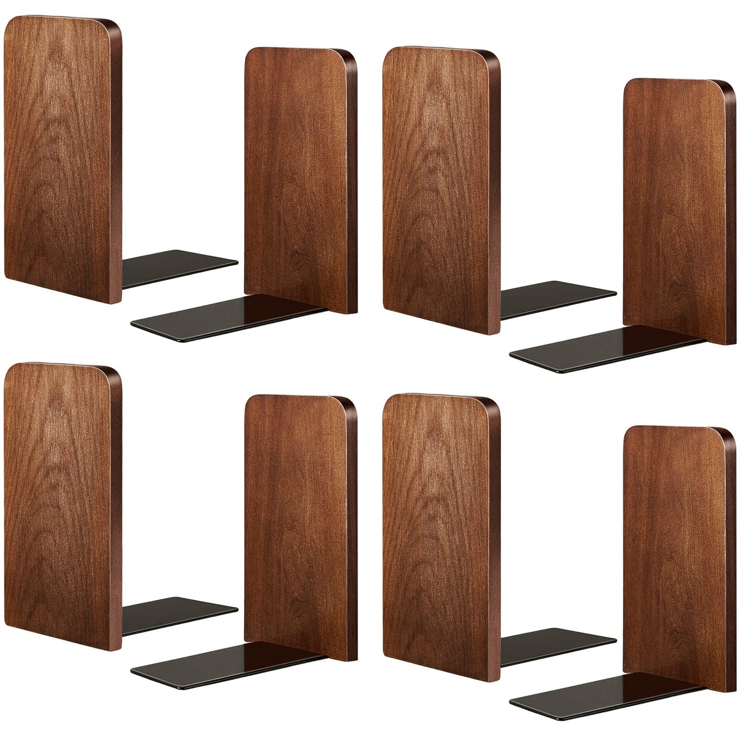 Eaasty 4 Pairs Wood Book Ends Walnut Bookends 5.2 x 3.2 x 4.2 Inches Sturdy Book Stoppers Book Holder Office Desk Decor Wood Desk Accessories Large Office Book Stand for Books, Decorative Book Shelf