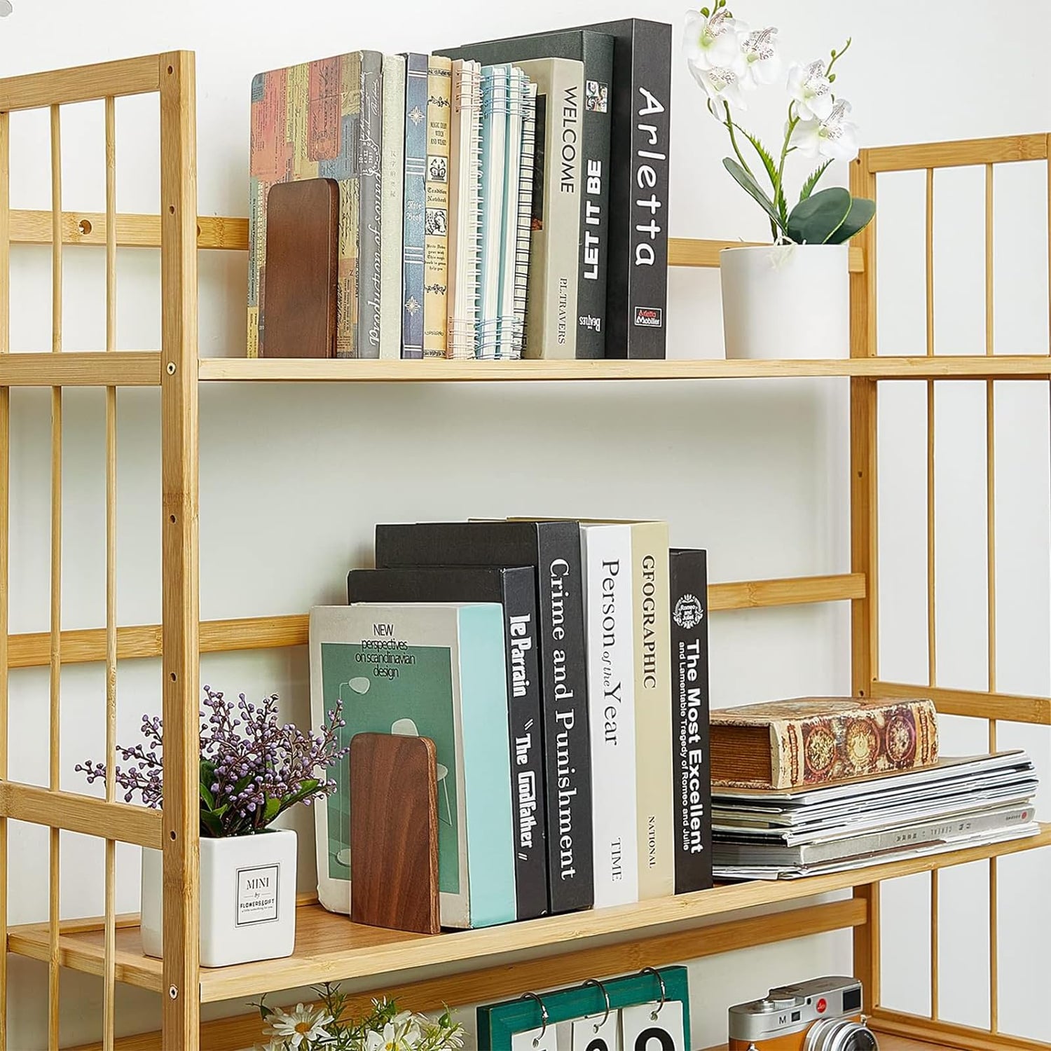 - Save Space: these wooden bookends adopt L shaped design, which are convenient to use and save more space; When you do not need to use them anymore, you can put them on the edge of the bookshelf to save more space for your bookshelf