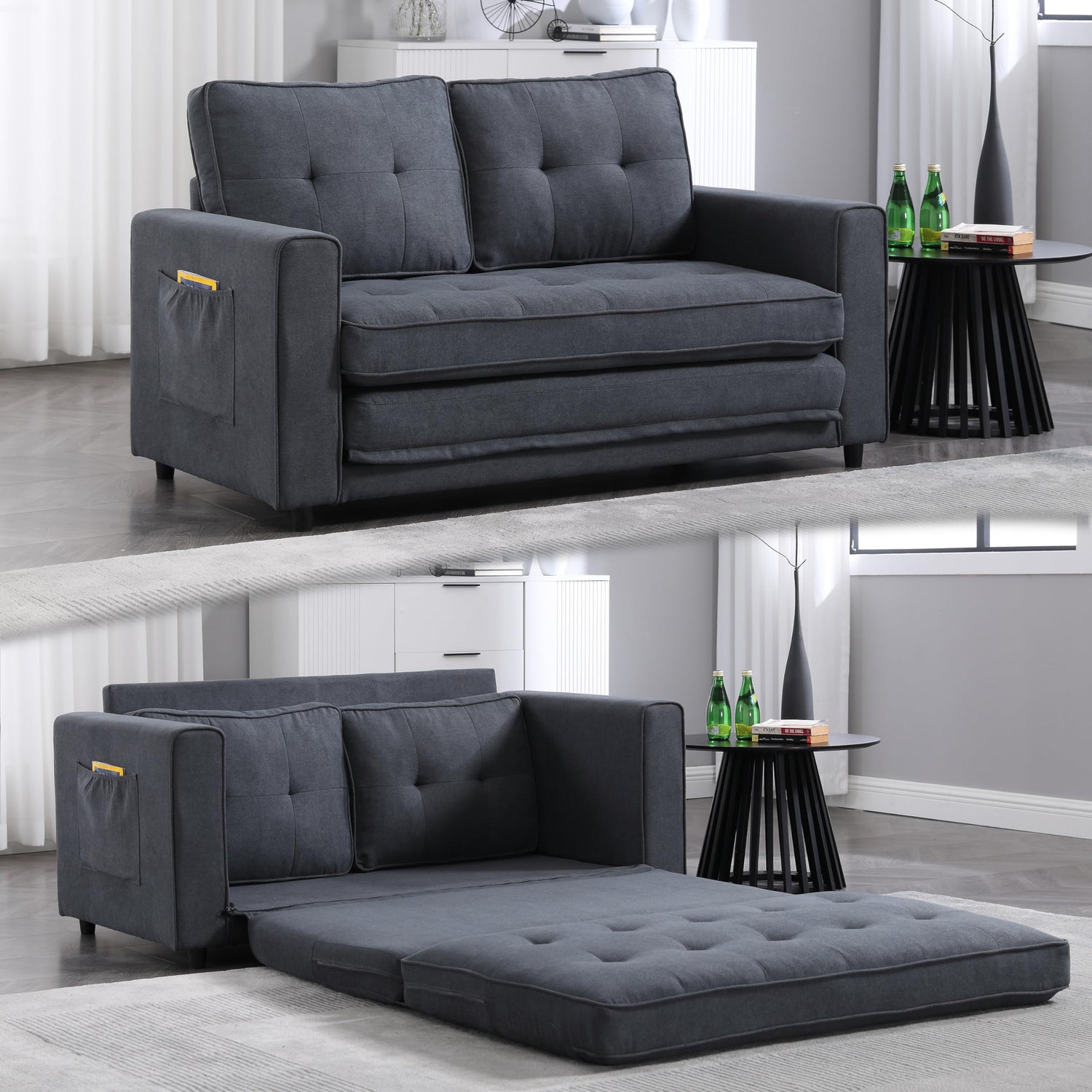 - Convertible Sleeper Sofa Bed⚡The advantage of three-in-one folding, you can flexibly expand or fold at any time, the folding bed can be used as a sofa when not in use, and you can have a big enough bed to kill two birds with one stone. When you need to save space, you can put the bed away as a sofa, Perfect for smaller living areas, expand your living space with innovative sofa bed designs.