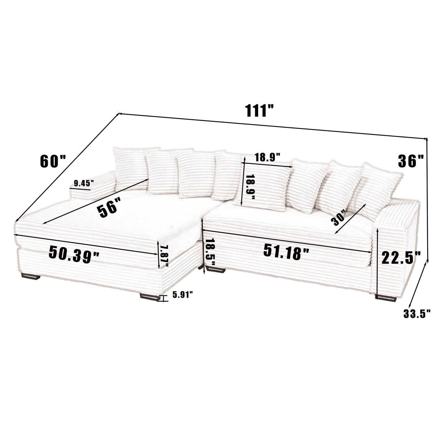 - Easy Assemble Large Sectional Sofa :Overall sofa size:111*60*36''(L*D*H).The sofa comes with clear installation instructions, so following the steps in the manual makes it easy to complete the installation.