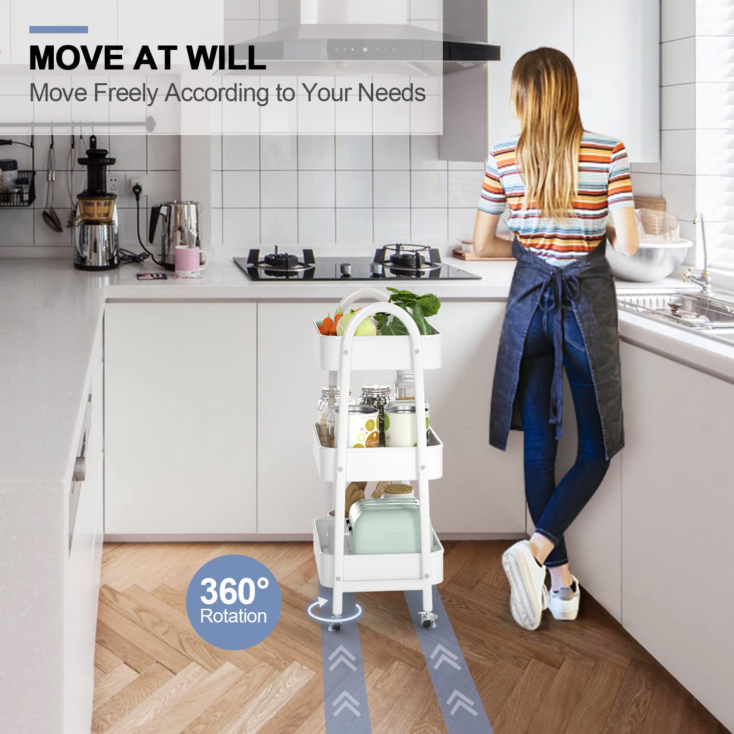 - Sturdy Metal Material, High Load-bearing: The cart is crafted of sturdy steel, sturdy and long to last. It supports 55 LBS per shelf. 3 large and deep baskets provide enough room for your daily essentials, kid supplies, office product, etc.