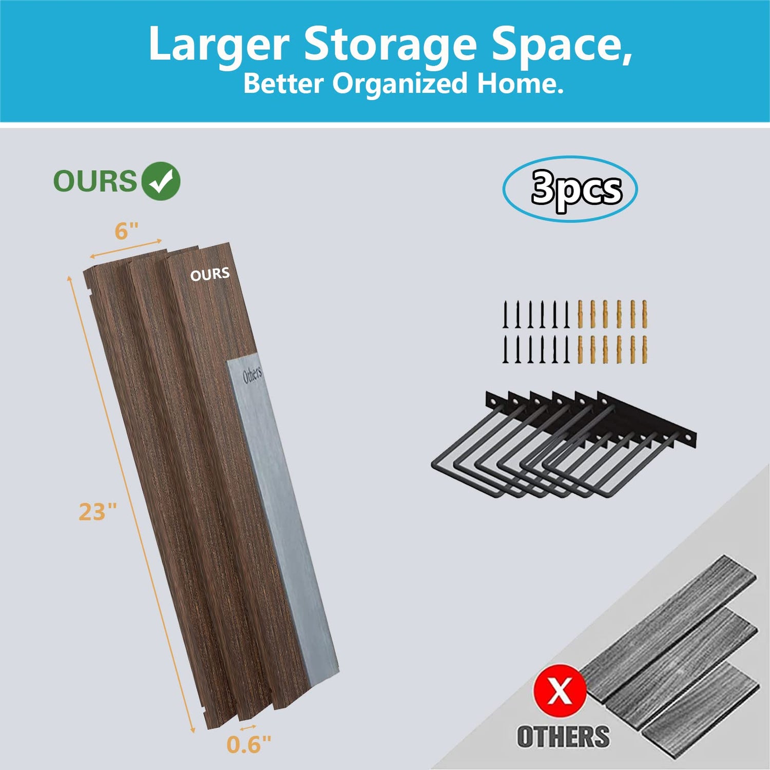- [Package Contents & After Sales]: The package contains 3 same size wood shelves, 6 black metal brackets, 12 screws, 12 plastic anchors, 1 installation instruction manual. Further, we offer a lifetime guarantee, if you are not satisfied with the product or any queries, please feel free to contact us