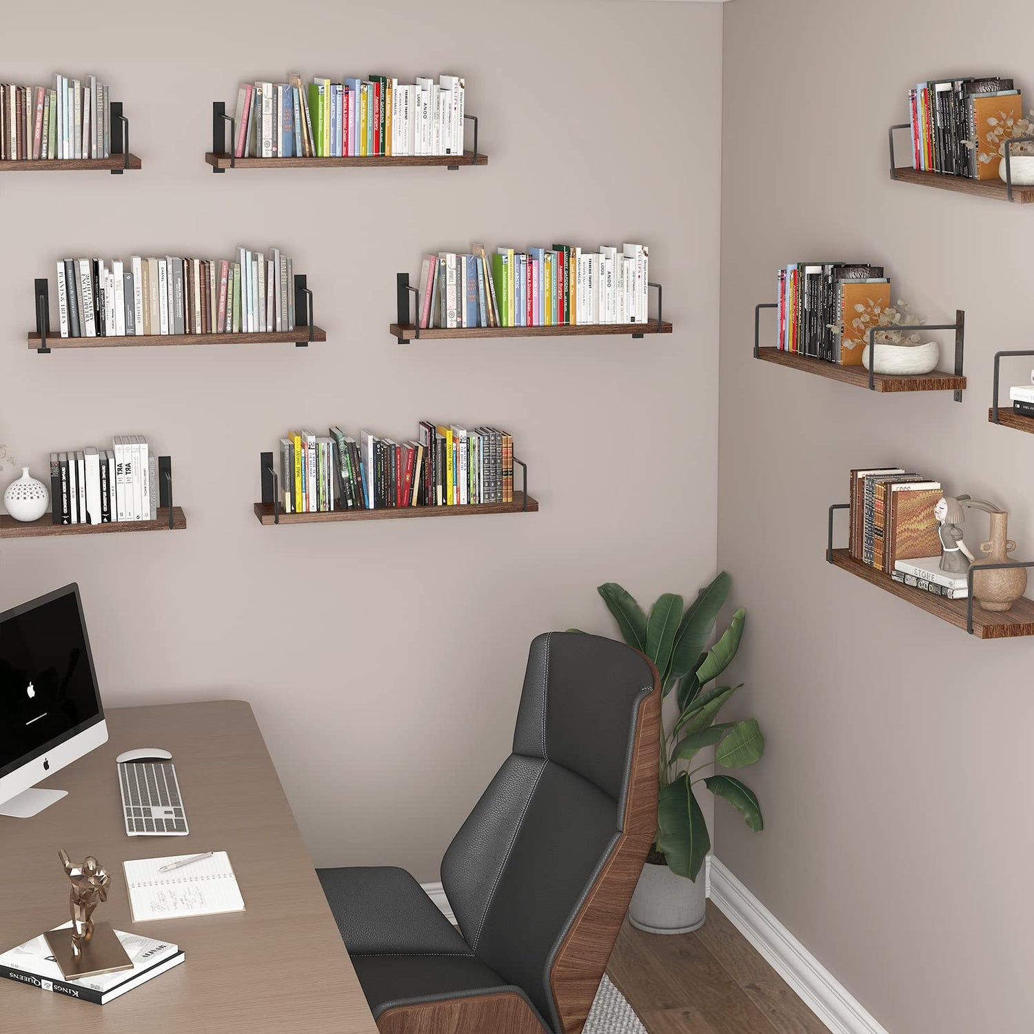 - [Long Floating Shelf]: Each of the EALLRINEC wooden wall shelf measures 24" x 6" with a modern minimalist design, approaching for a much safer storage. Collectibles, albums, books, toys, artwork, trophies, small plants and more can be put on it