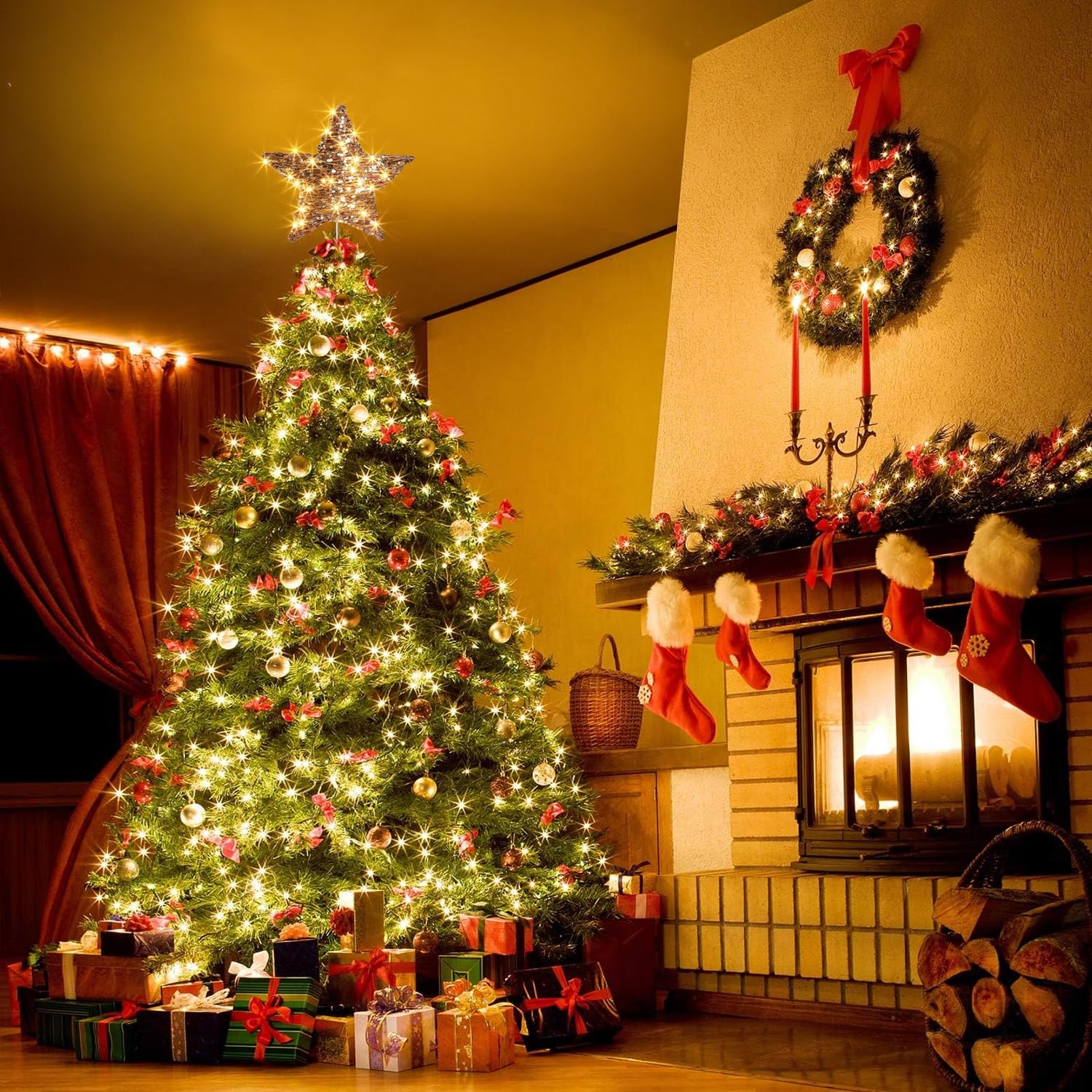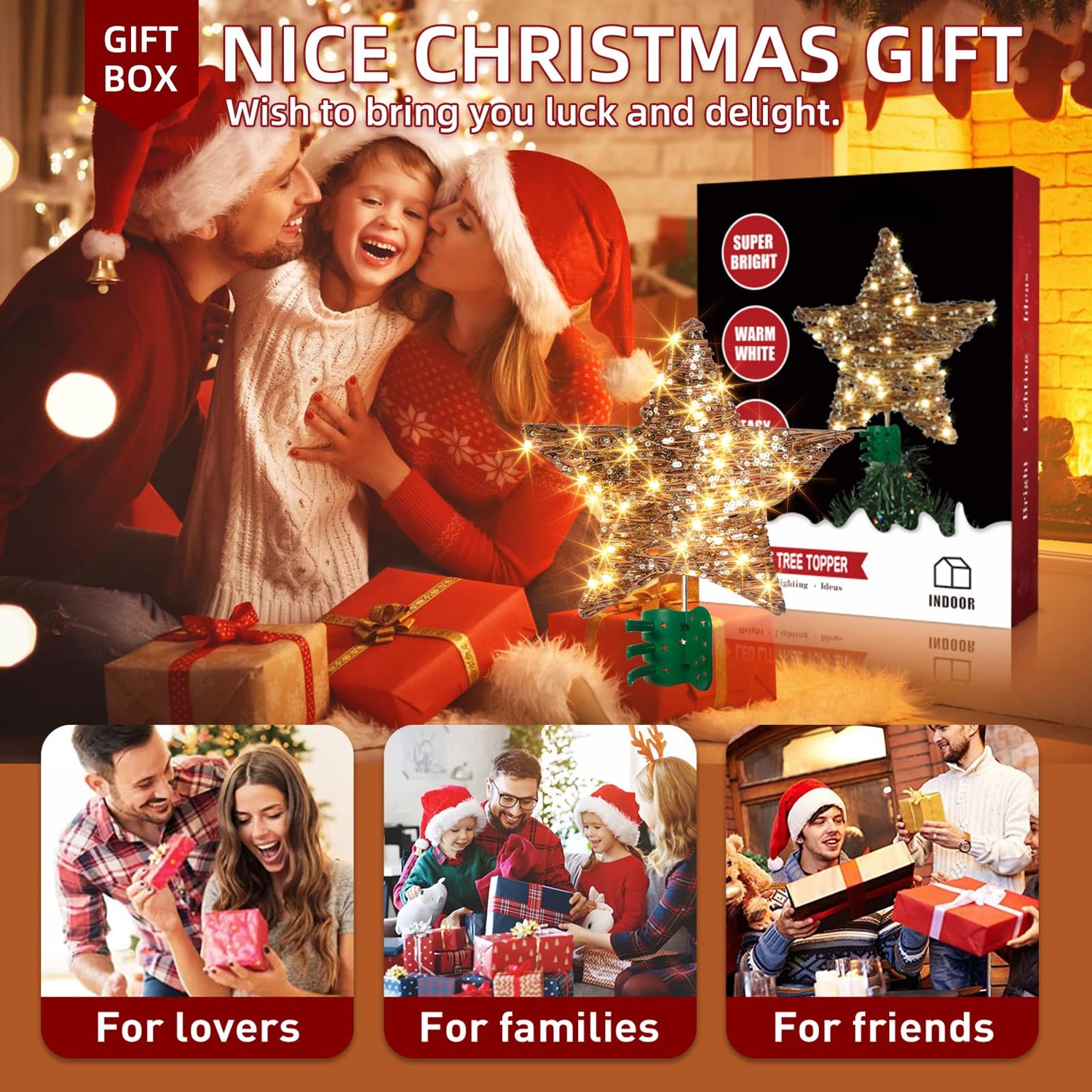 - Perfect Match: The hand-woven tree top light made of natural rattan matches the Christmas tree, giving you a warm and natural atmosphere of Christmas