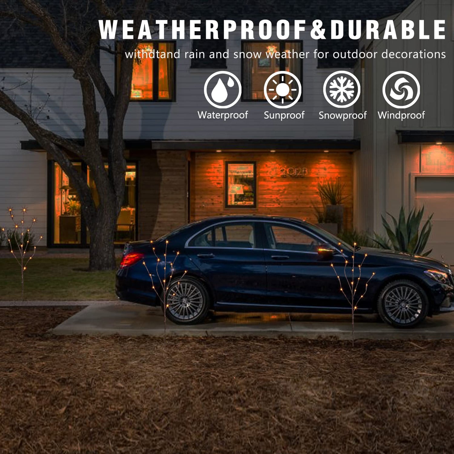 - Branches Lights: 3PK twig branches lights with ground stakes, twig height: 30", easy to install and storage