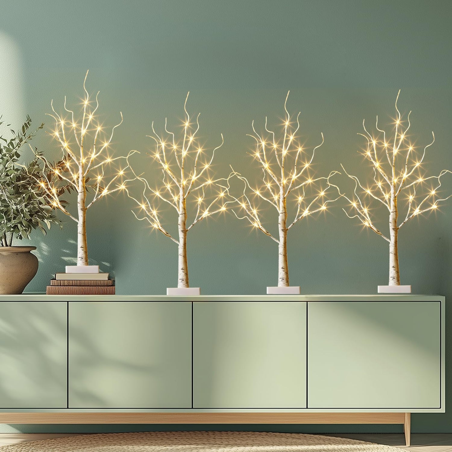 EAMBRITE Home Decorations Light Up White Birch Tree Indoor Christmas Decor, 4 Pack Battery Operated/USB Lighted Tabletop Money Tree Lamp Led Lights Easter Wedding Centerpiece Table Room (2 Ft)