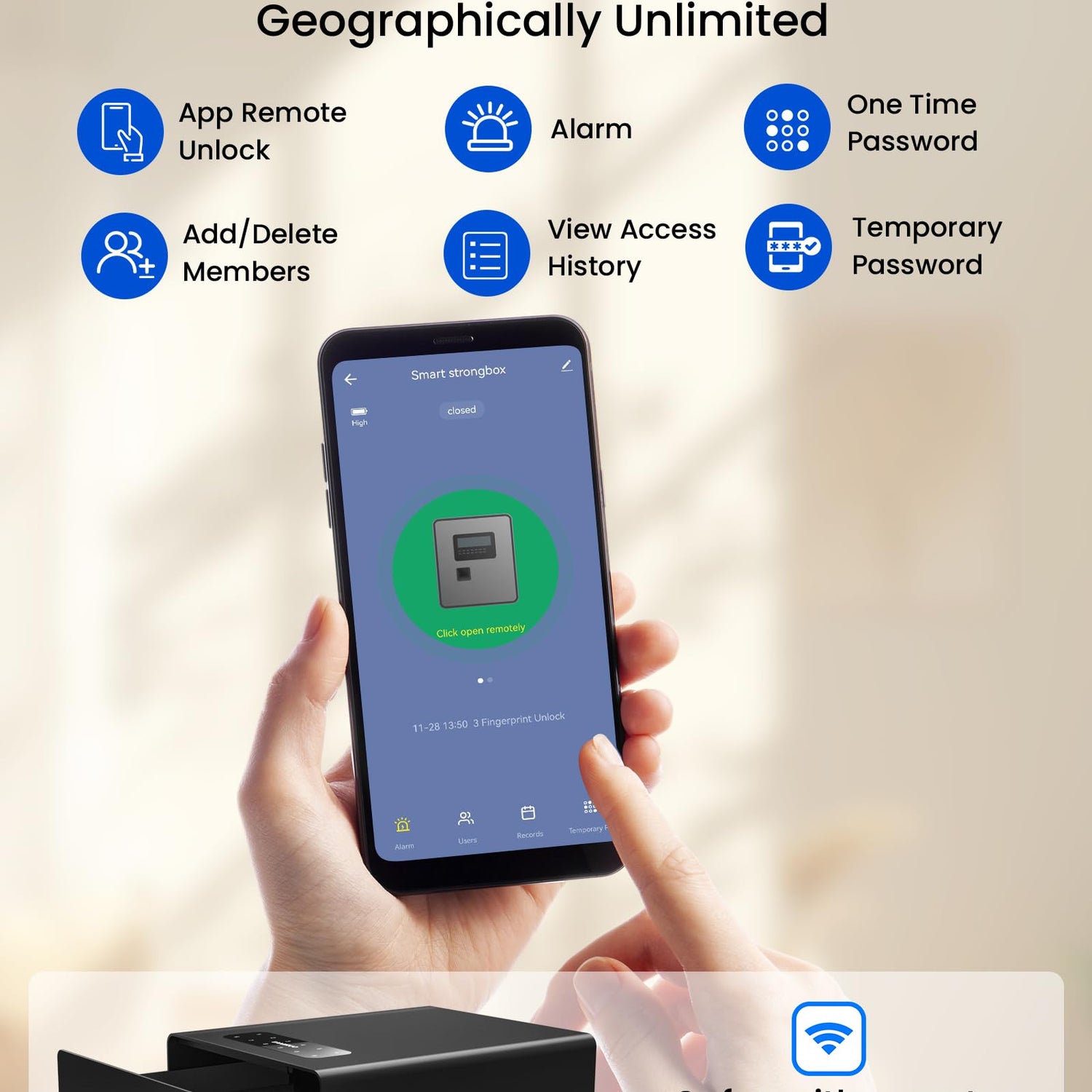 - 【4 Quick Access Methods】: Quick access via fingerprint, full numeric password, mobile app and mechanical key.