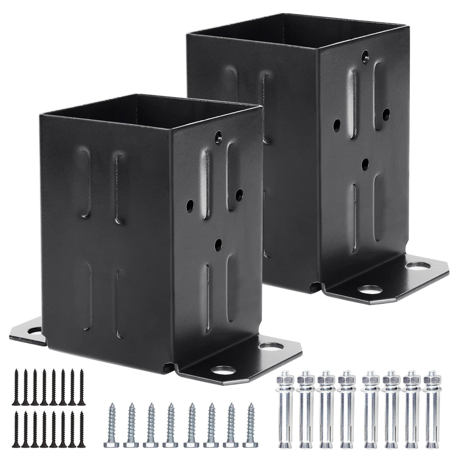 Eapele 4x4 Wood Fence Post Anchor Base, Thick Steel and Black Powder Coated, Come with Wood Screws and Concrete Anchors(Set of 2)