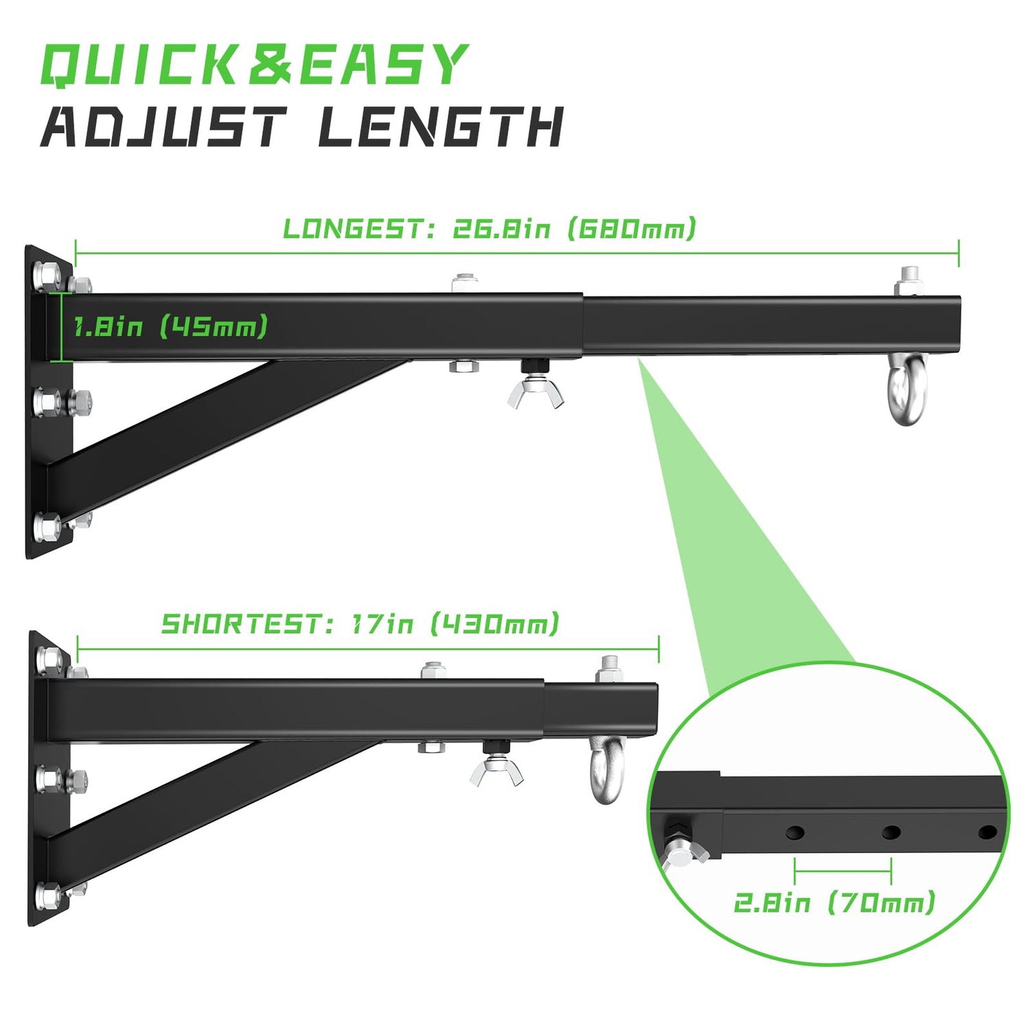 - 【Quickly Adjustable Length】The boxing bag wall mount can be adjusted to 17-25 inches, according to your requirements. This makes it suitable for all sizes of boxing bag, kickboxing bag, Muay Thai bag and other similar equipment. This adjustable punching bag mount is perfect for all your training needs