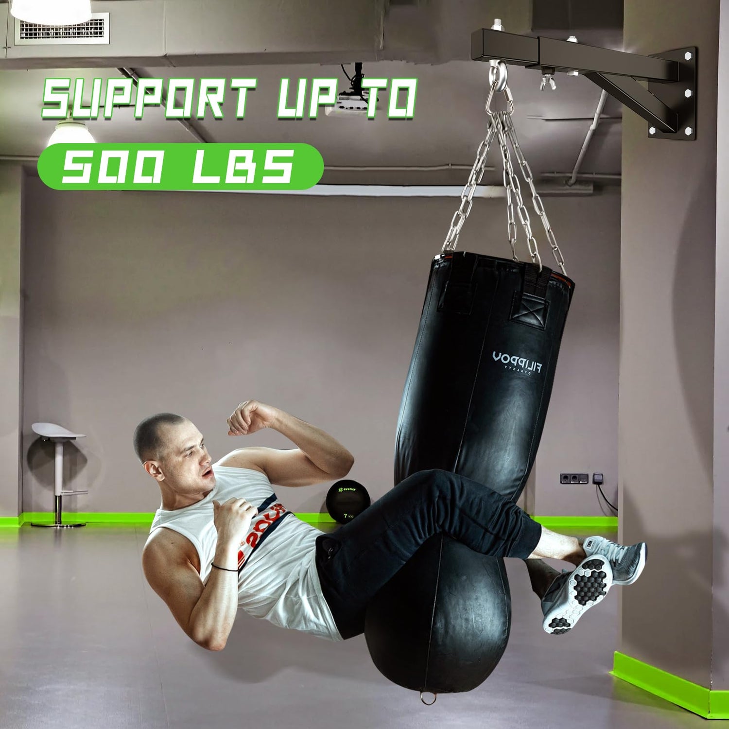- 【Sturdy for Any Heavy Bag】This punching bag wall mount features high-strength steel, the wall mount with 6 holes, and loads up to 500lb, ensuring your punching bag hangs securely without deforming, so you can concentrate on your workout