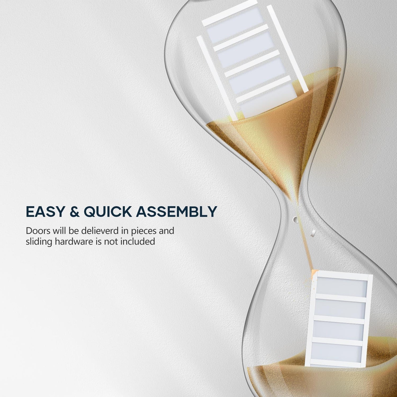 EaseLife 48in x 84in Glass Barn Door with 8FT Sliding Door Hardware Kit Included & Handle,Solid LVL Wood Covered with Water-Proof & Scratch-Resistant PVC Surface,DIY Assembly,5-Panel Glass,White