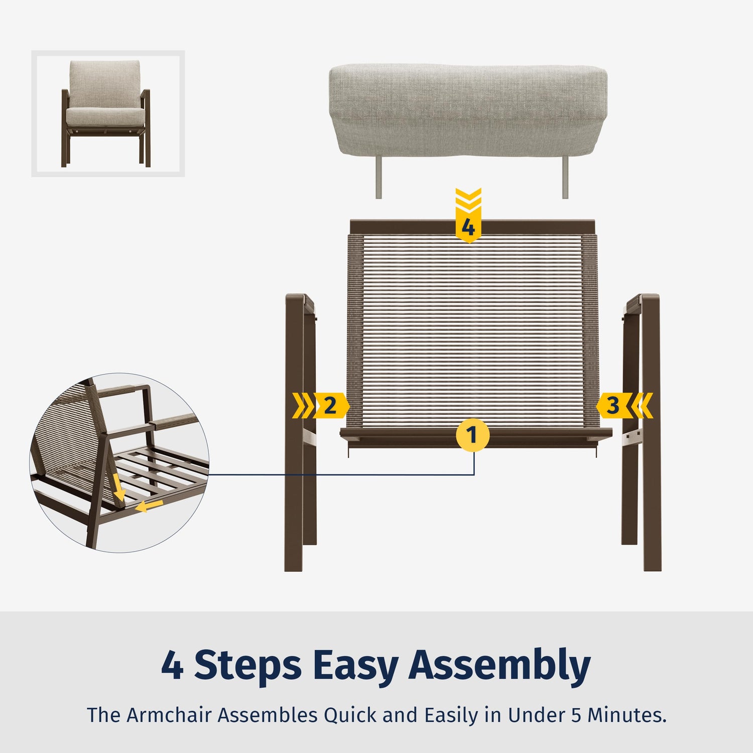 - Durable Construction: Crafted with all weather powder coated metal, this furniture set is exceptionally durable. The Olefin fabric, coated with TPU, delivers waterproof, lightfast, and UV-resistance durability. Each single sofa chair can support up to 330 pounds, while the loveseat accommodates up to 660 pounds.
