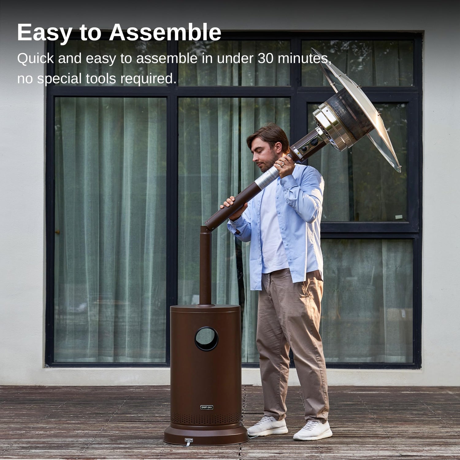 - ๐๐ฎ๐๐ ๐๐ผ ๐๐๐๐ฒ๐บ๐ฏ๐น๐ฒ ๐ฎ๐ป๐ฑ ๐ ๐ผ๐๐ฒ: Some parts are assembled in advance, and the upgraded reflector shield only needs to be assembled with three reflector pieces. The installation of the entire product, following the instructions, can be completed in about 30 minutes. The Outdoor Patio Heater has two wheels on the bottom for smooth movement