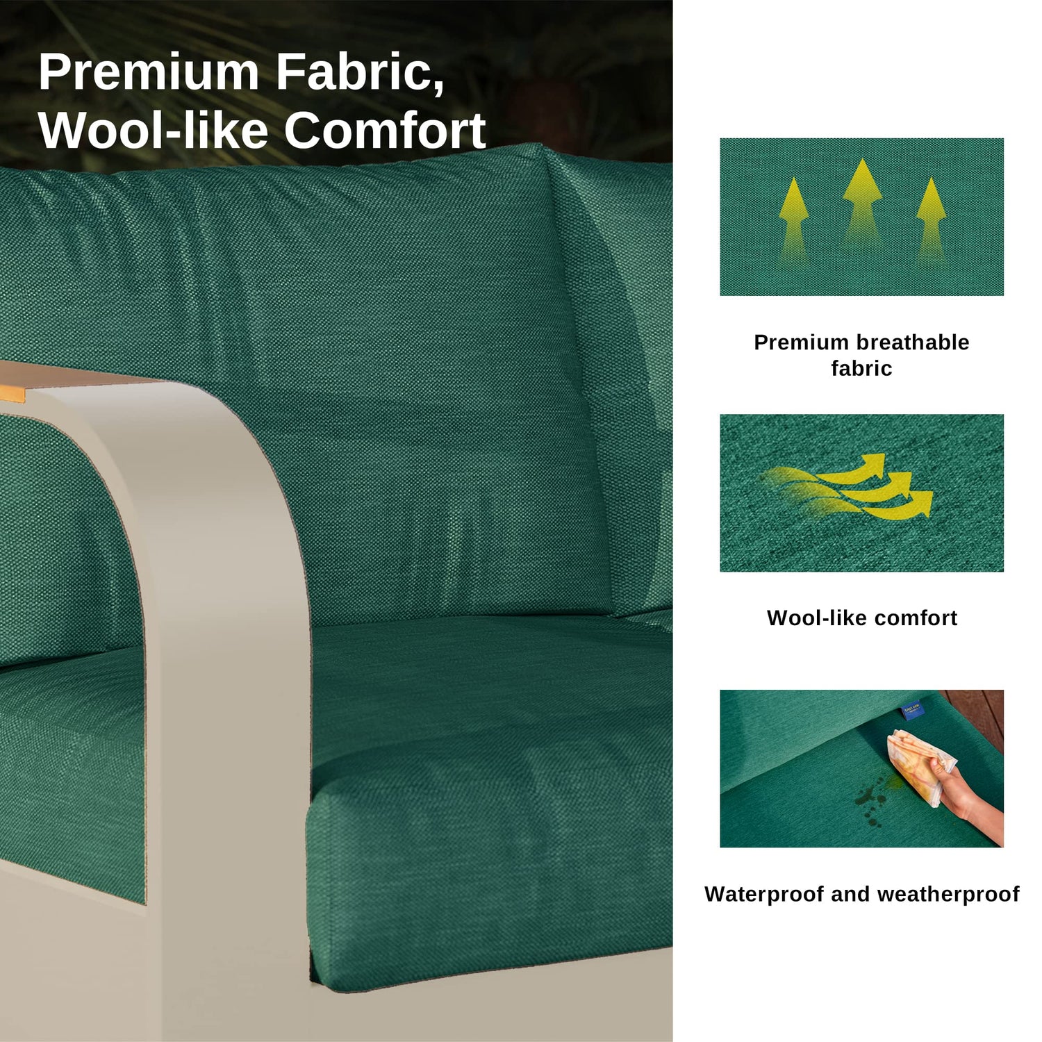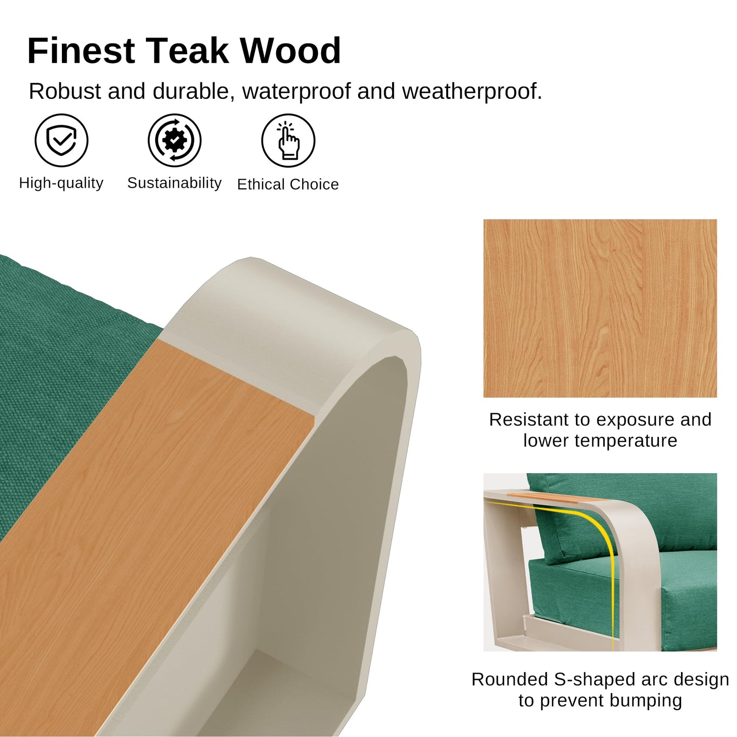 - Durable and Long-Lasting: This patio set is crafted from weather-resistant materials, such as rust-resistant powder-coated aluminum frame, natural teak wood armrests, and waterproof Acrylic fabric, making it an impeccable choice for outdoor settings.