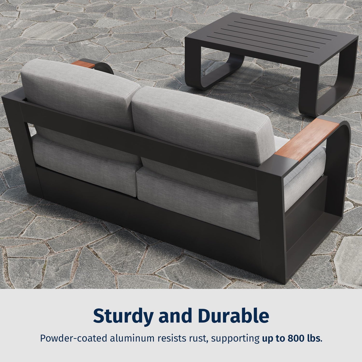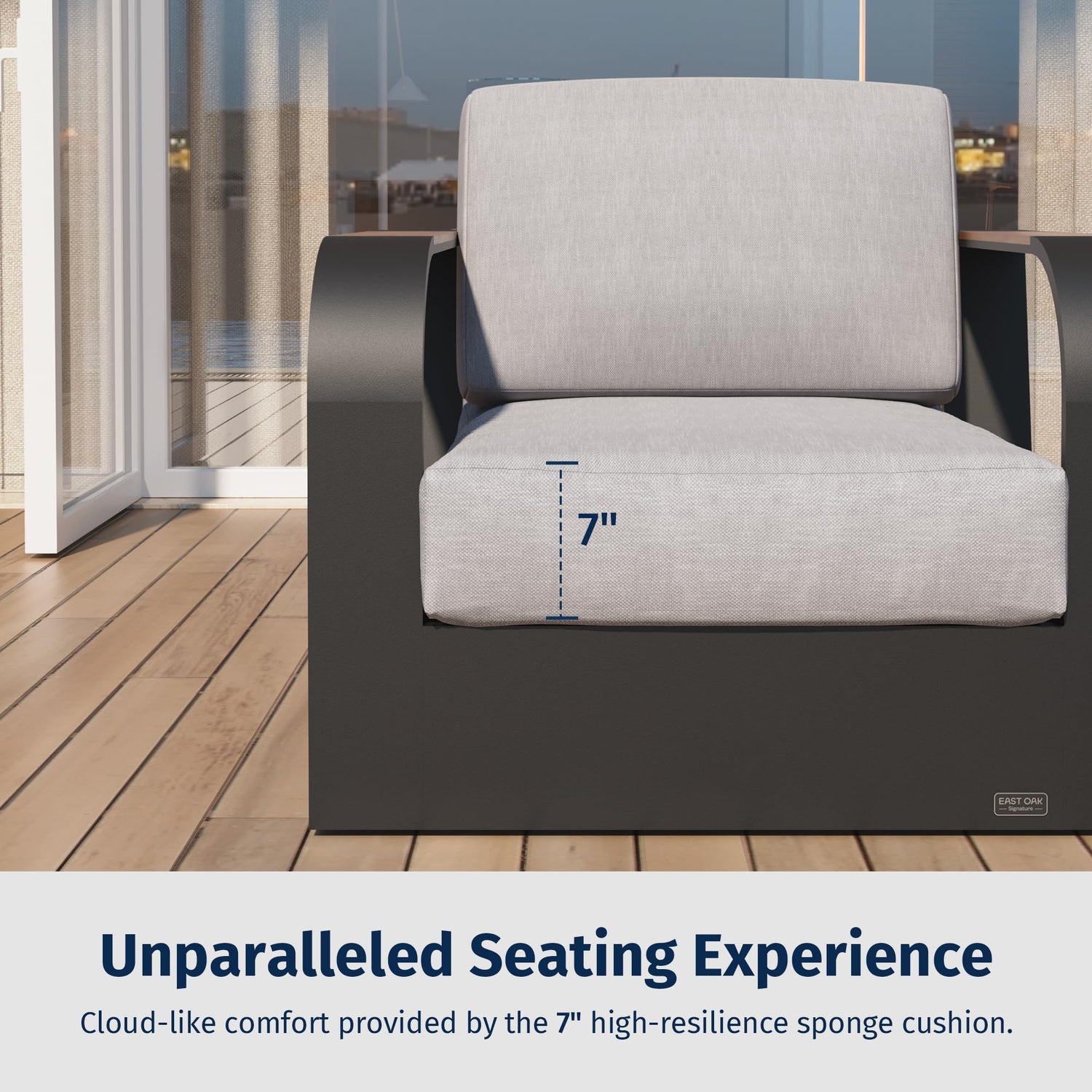EAST OAK Signature 4 Pieces Patio Furniture Set, Outdoor Furniture with Aluminum Frame, Deep Seating Outdoor Loveseat and Coffee Table, Modern Patio Conversation Set for Porch and Balcony, Dark Grey