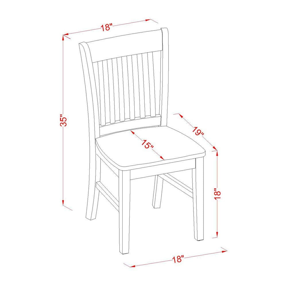 PRODUCT FEATURES: Seat: Wooden Dining Table Color: Oak Wood Chairs Color: Oak Dining Chairs Dimensions: Length: 19; Width: 18; Height: 35. Kitchen Table Dimensions: Length: 36; Width: 36; Height: 29.5.