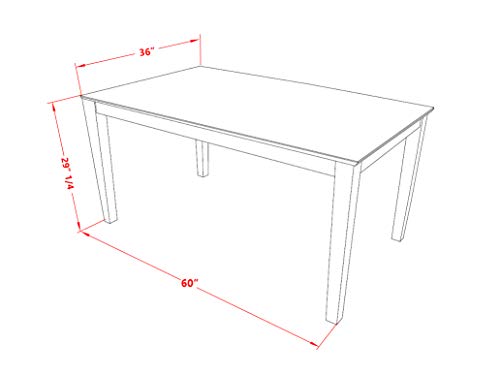 PRODUCT FEATURES: Frame Material: Rubber Wood Color: Linen White Finish Dining Chair Seat Material: Wooden Seat Table Top Style: Rectangular Top Chair Back Style: Slatted Back Dimension of Table: Length: 60; Width: 36; Height: 30. Dimension of Chair: Length: 20; Width: 17; Height: 37.