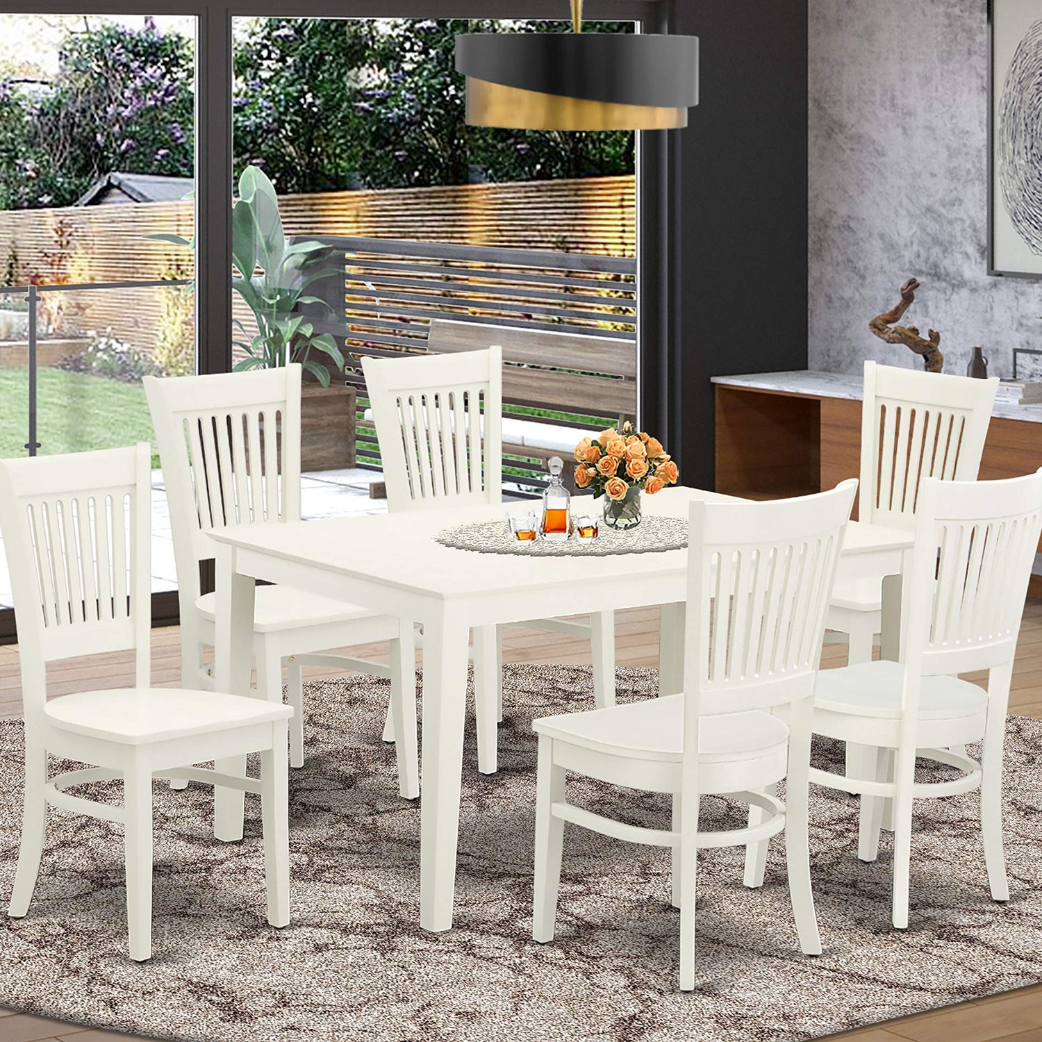 East West Furniture Capri 7 Piece Set Consist of a Rectangle Dining Room Table and 6 Wood Seat Chairs, 36x60 Inch, Linen White