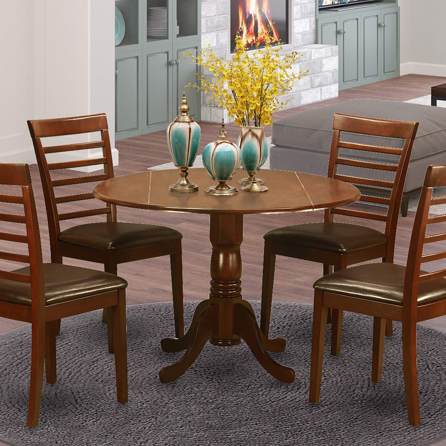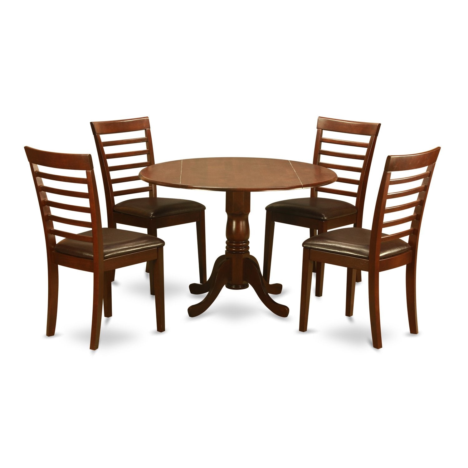 East West Furniture DLML5-MAH-LC 5 Piece Modern Set Includes a Round Wooden Table with Dropleaf and 4 Faux Leather Upholstered Dining Chairs, 42x42 Inch