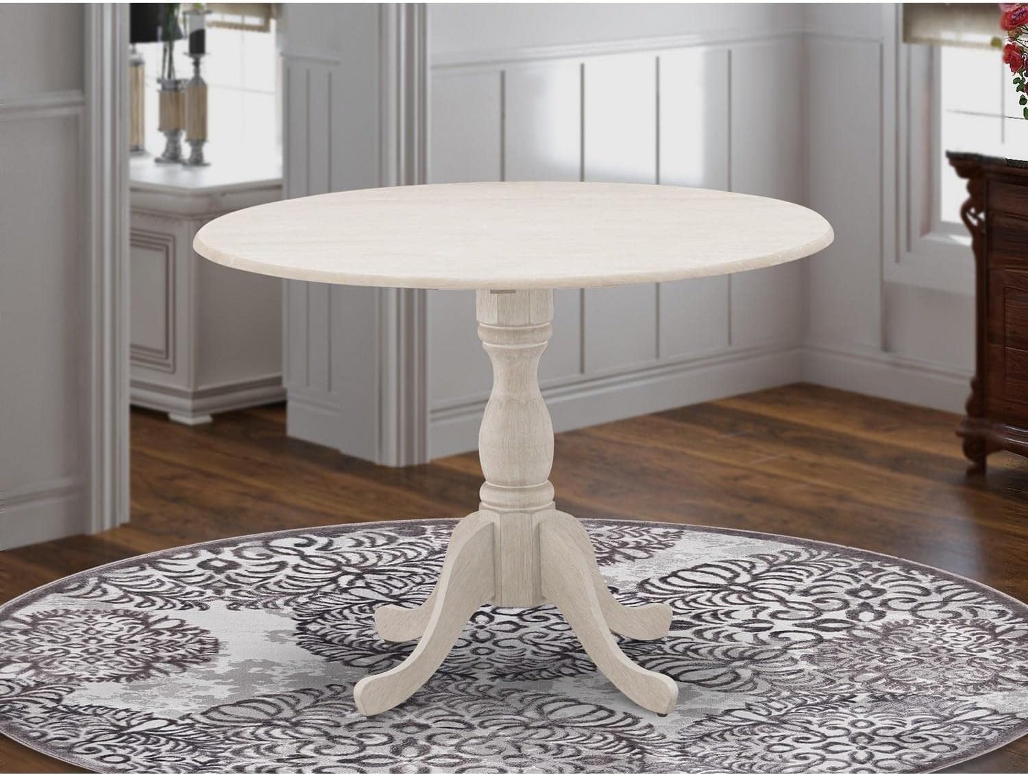 East West Furniture DMT-ABC-TP Dublin Kitchen Dining Table - a Round Wooden Table Top with Dropleaf & Pedestal Base, 42x42 Inch, Wirebrushed Buttercream