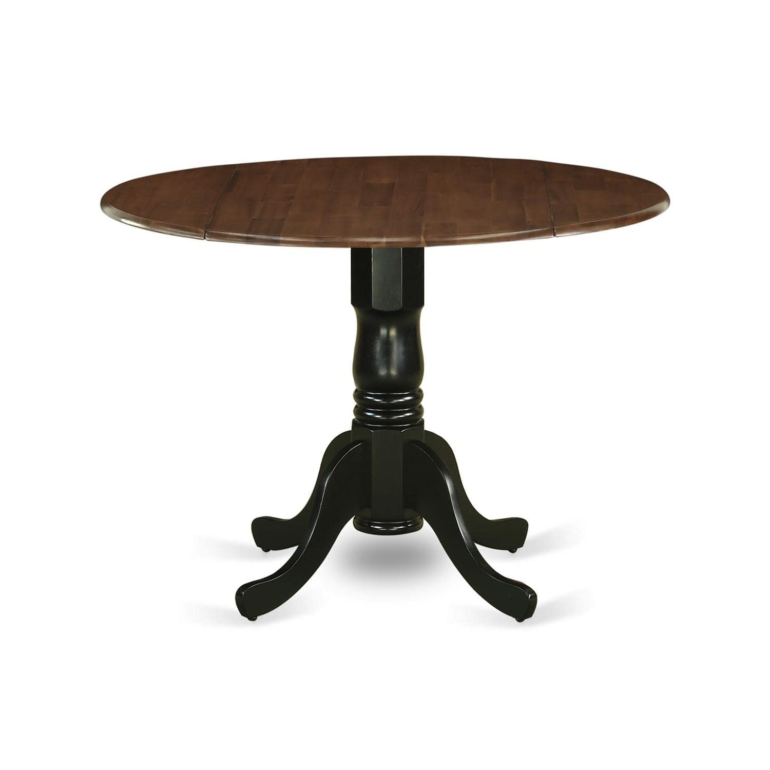 East West Furniture DMT-WBK-TP Dublin Dining Room Table - a Round kitchen Table Top with Dropleaf & Pedestal Base, 42x42 Inch, Walnut & Black