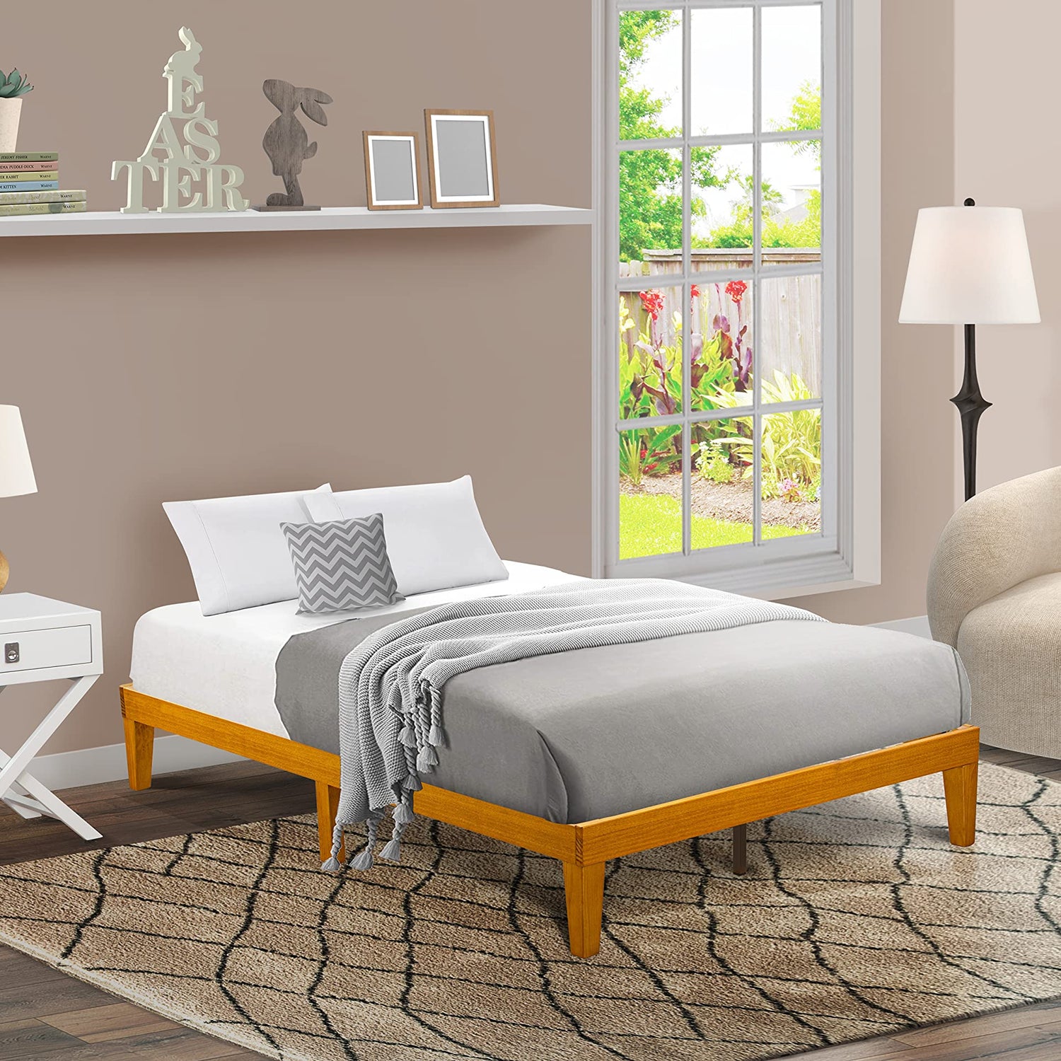 Enrich your bedroom experience with the East West Furniture Elegant Oak Full Size Platform Bed Frame—a perfect combination of style, comfort, and functionality. Create a serene retreat where elegance meets practicality.