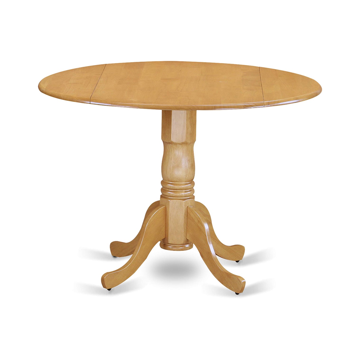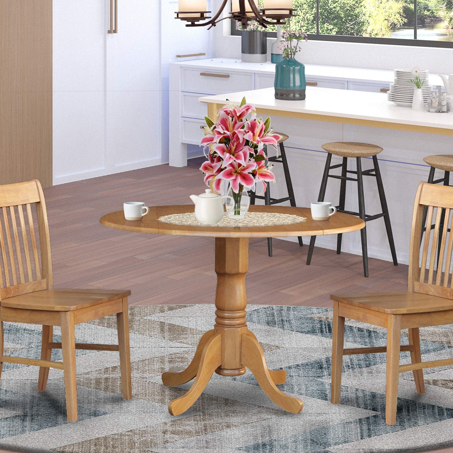 East West Furniture Dublin 3 Piece Modern Set Contains a Round Wooden Table with Dropleaf and 2 Dining Chairs, 42x42 Inch, DLNO3-OAK-W