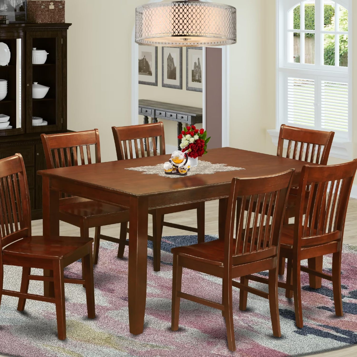 East West Furniture DUNO7-MAH-W 7 Piece Dining Set Consist of a Rectangle Solid Wood Table and 6 Kitchen Room Chairs, 36x60 Inch, Mahogany