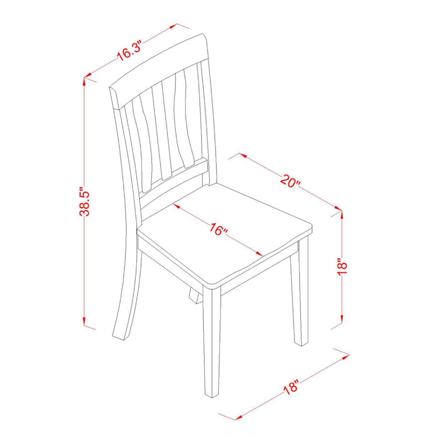 - ITEM DIMENSIONS: Dining Table Dimensions: Length: 36; Width: 36; Height: 30. Chair Dimensions: Length: 20; Width: 18; Height: 38.5.